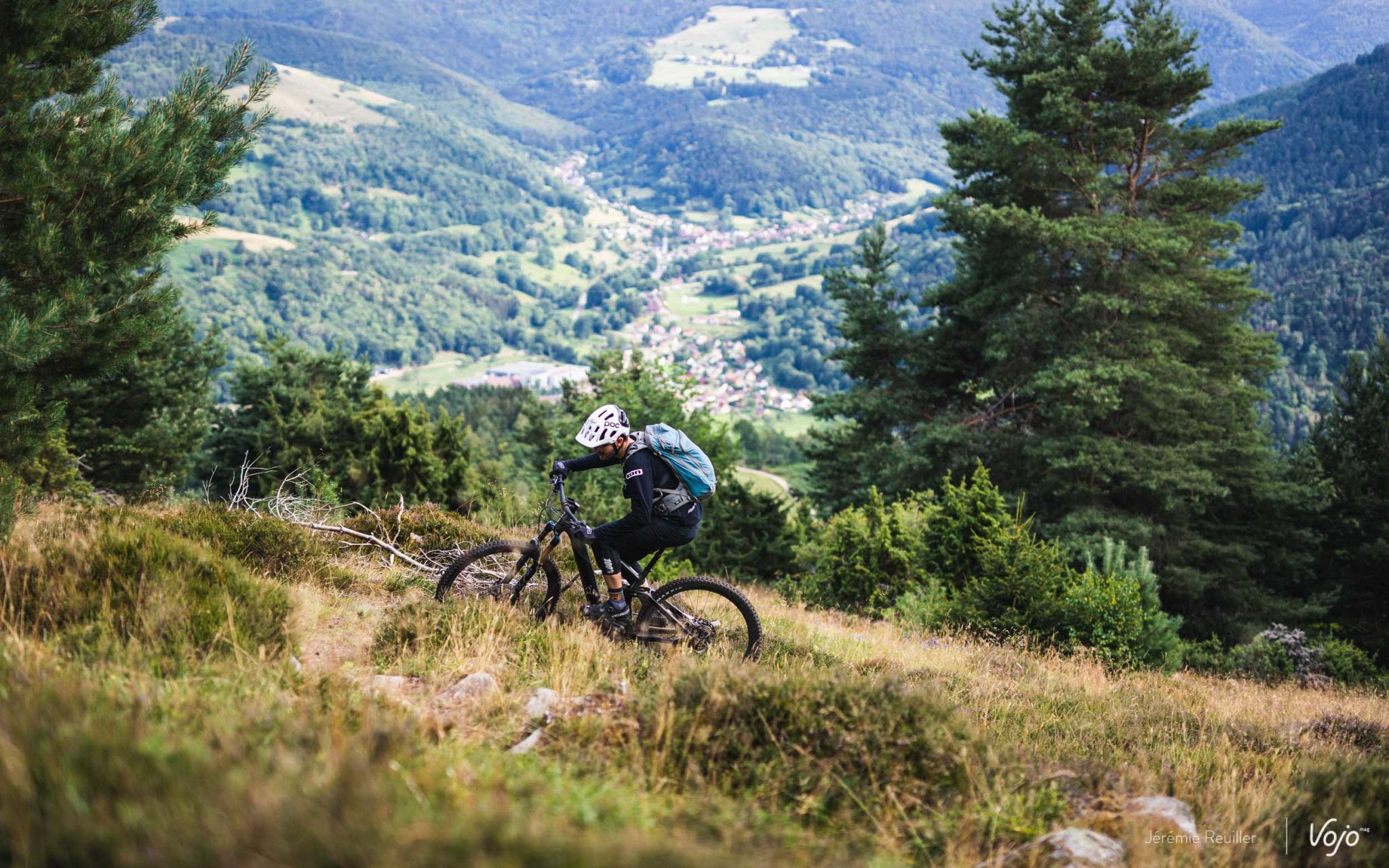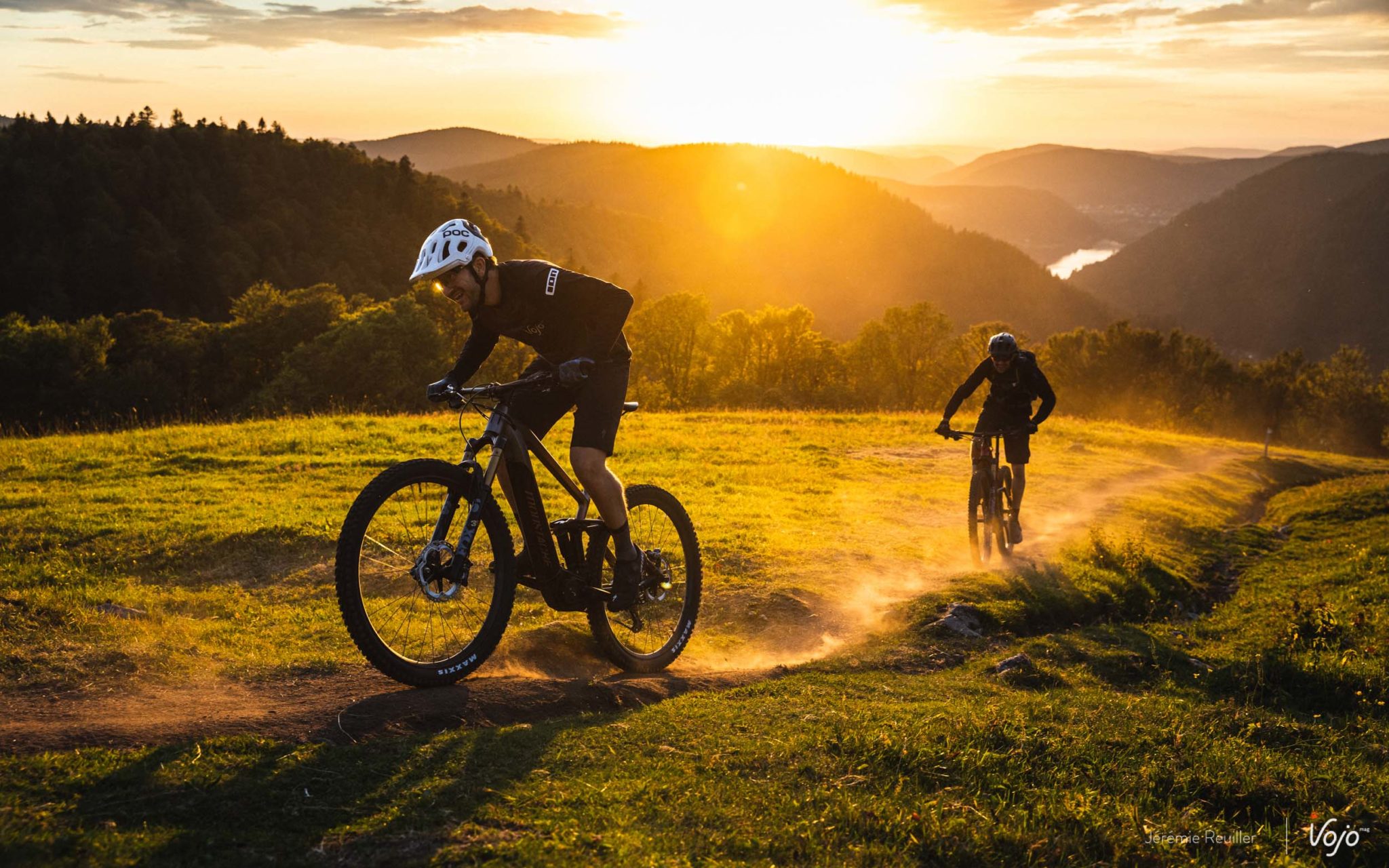 Après une petite mise en jambe d’un après-midi passé sur les trails autour d’Epinal, berceau de la marque, nous avons pris la direction du col de la Schlucht pour un nouveau petit ride au coucher de soleil et surtout pour un tour complet de la vallée de Munster en guise de plat de résistance. Avec un bon 70 bornes et plus de 3500m de d+ bien technique, la journée a été plutôt chargée et nous avons eu l’occasion de bien cerner le comportement du Moustache Samedi Trail 10, même si nous ne l’avons pas roulé sur nos trails habituels.