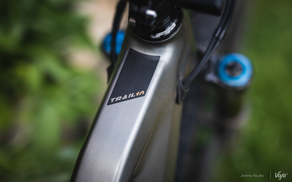 Ah oui, on allait oublier de parler de l’ensemble moteur/batterie ! Il s’agit, comme toujours chez Moustache, du Bosch Performance CX, monté ici d’office avec la batterie de 625Wh. Nous parlerons plus loin de l’autonomie, mais signalons qu’il dispose maintenant d’une mise à jour qui fait passer le couple à 85Nm et qui offre de petites fonctionnalités en plus, comme l’Extended Boost qui prolonge l’action du moteur pendant 90ms quand on arrête de pédaler, ce qui permet de donner un dernier mini coup de pouce parfois bien utile pour passer tout juste un franchissement. Enfin, sur le Trail 10, on dispose de l’écran de contrôle Kiox en couleurs et archi complet niveau infos, ainsi que d’un « Fast Charger » qui permet de recharger plus vite sa batterie. Reste à voir maintenant ce que tout cela donne sur le terrain !