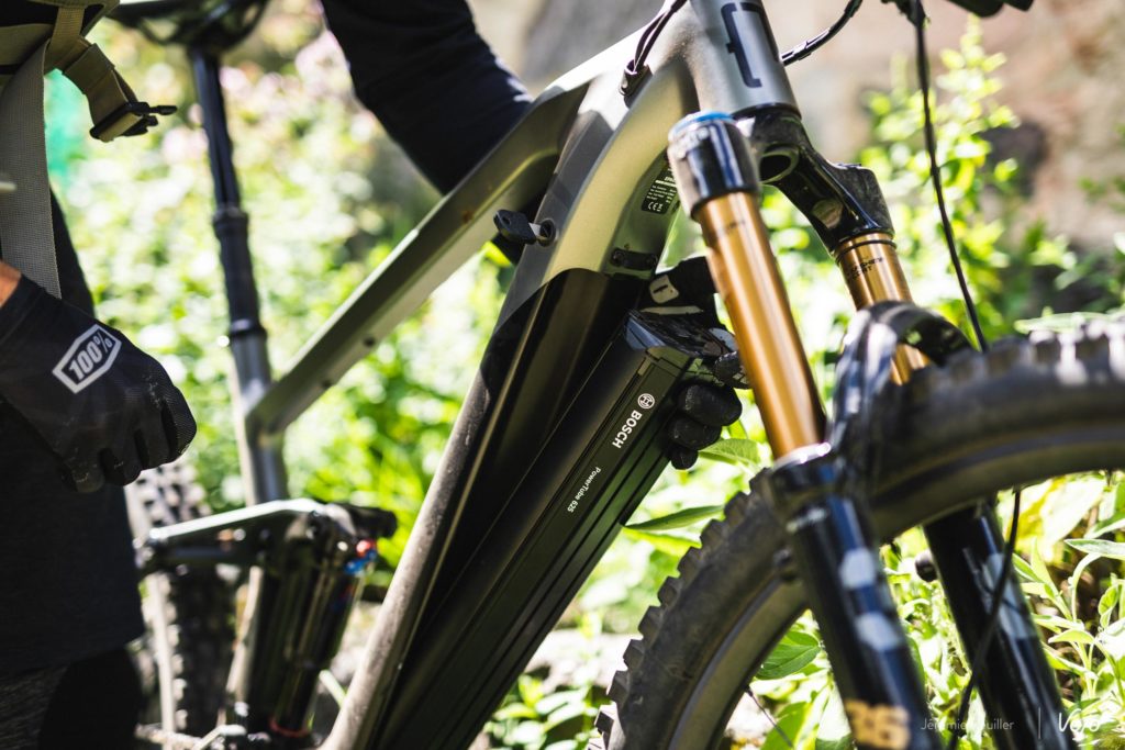 Autre changement sur ce modèle : la fourche. On passe de la Fox 34 à la Fox 36, avec de plus gros plongeurs, donc. Le châssis est renforcé (d’autant plus dans cette version spécifique e-bike), mais avec le renouvellement de la gamme Fox (voir toutes les infos dans cet article) il s’oriente plus vers une pratique trail que pur enduro comme par le passé.
