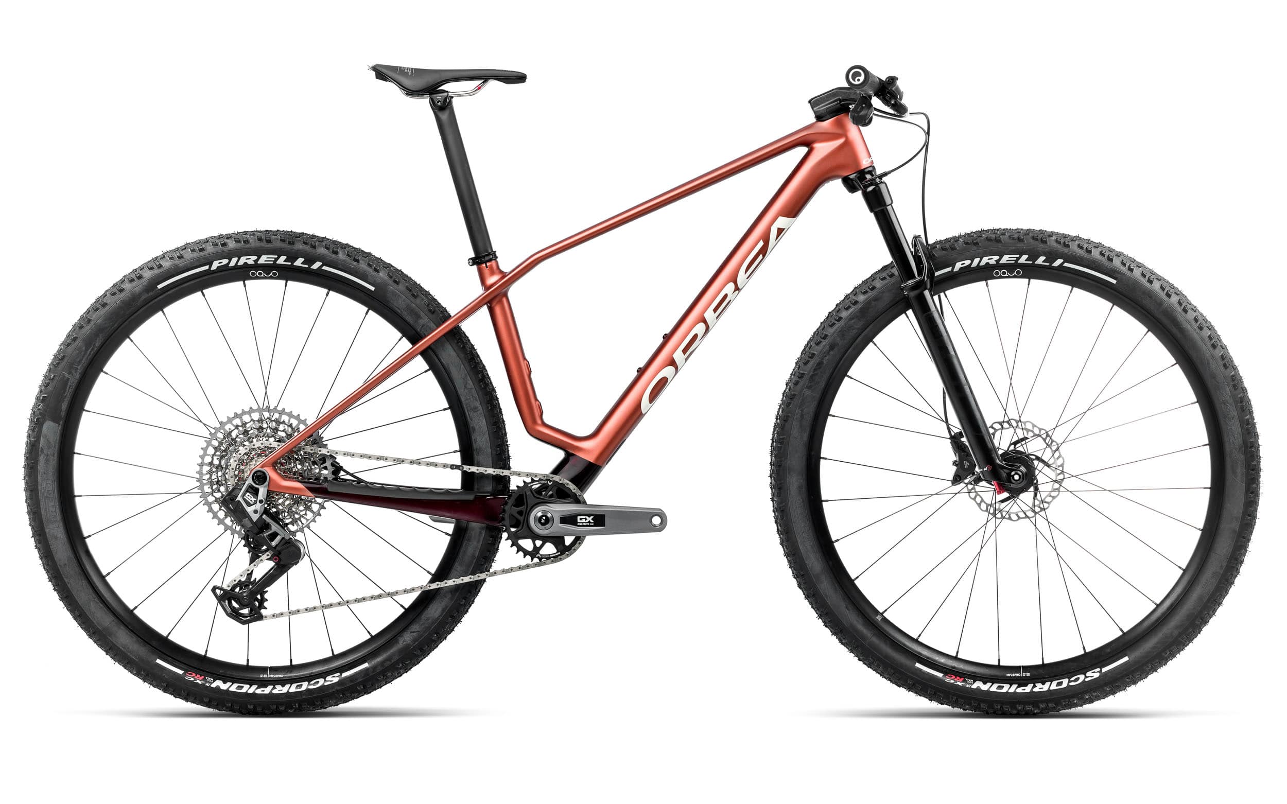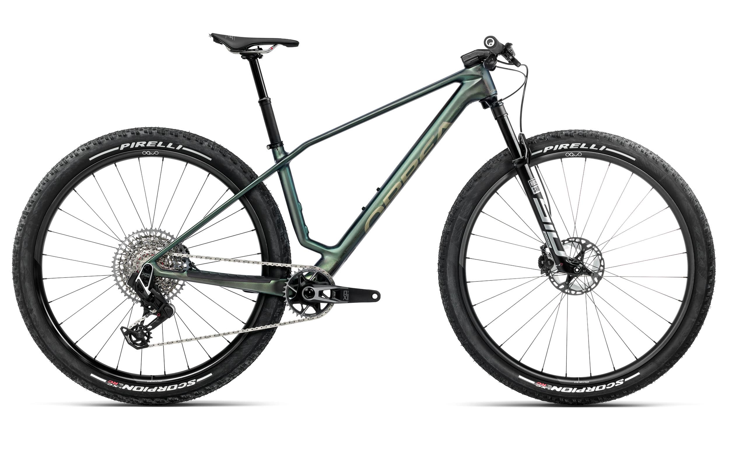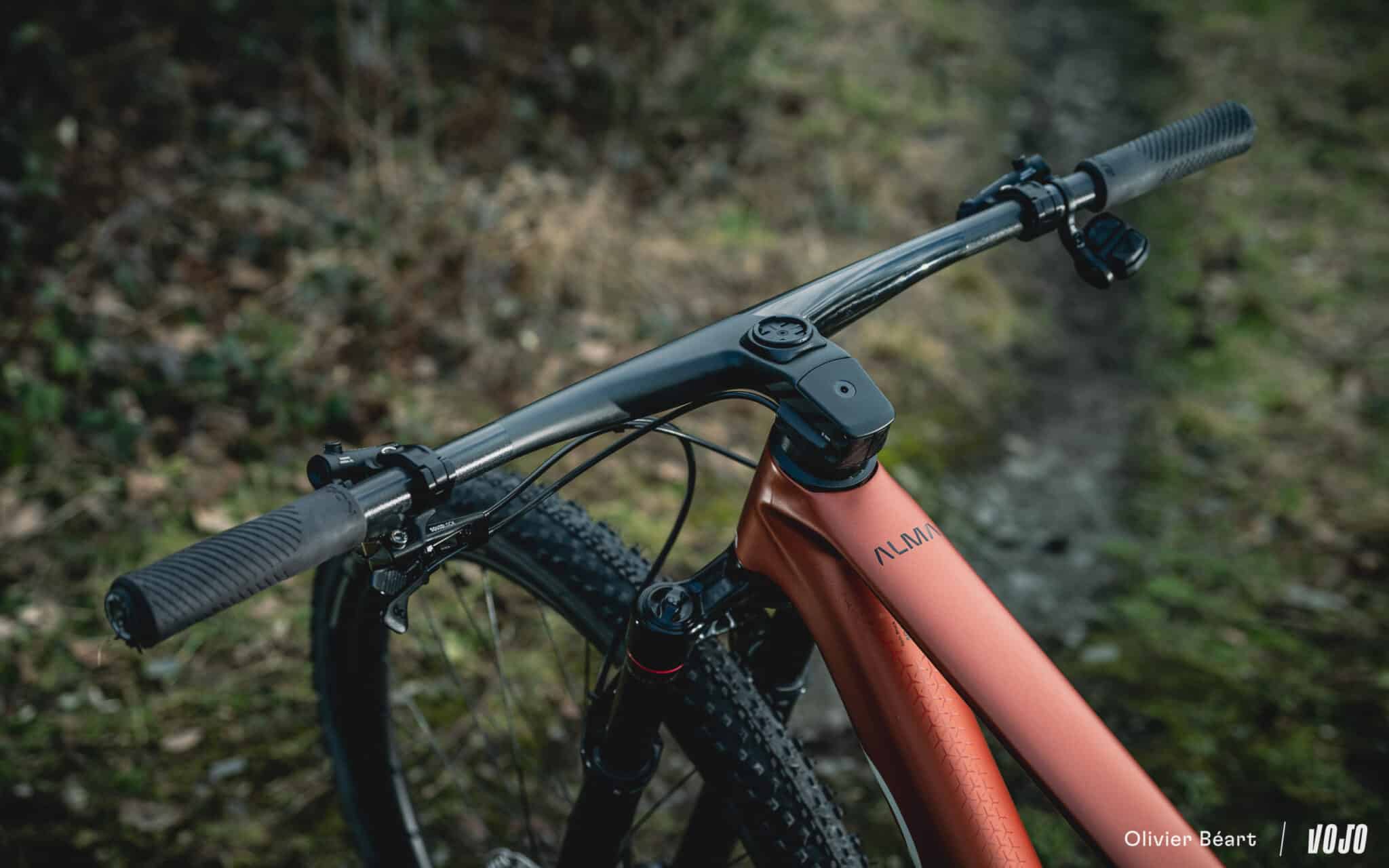 A 3999 €, l’Orbea Alma Pro (qui illustre notre article) est en fourche SID SL Select, transmission Sram GX AXS T-Type, freins Shimano MT 6100, roues Oquo alu MP28 Pro, tige de selle carbone fixe OC (dropper en option), cockpit carbone intégré OC MP10 et pneus Pirelli Scorpion XC RC 2.4