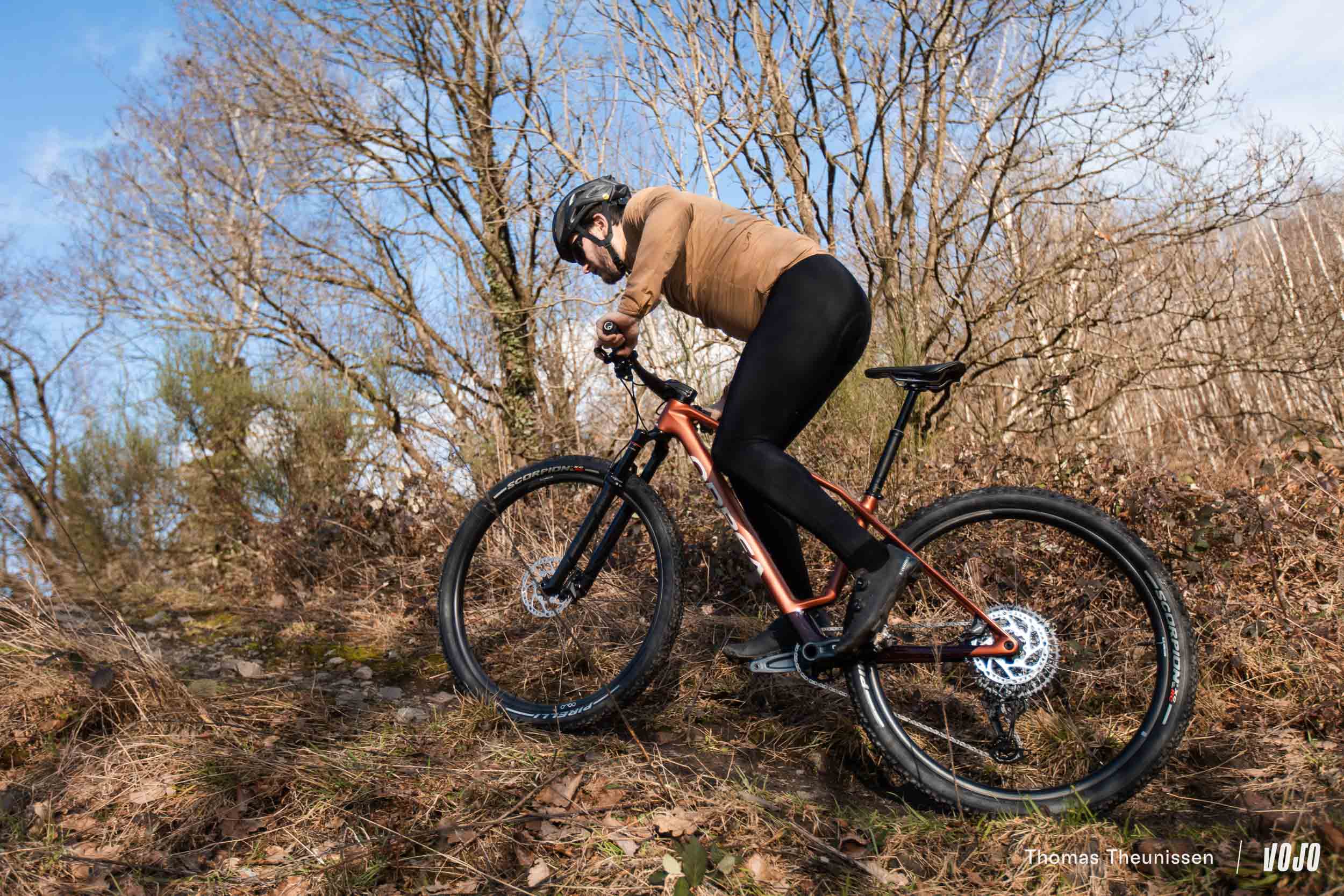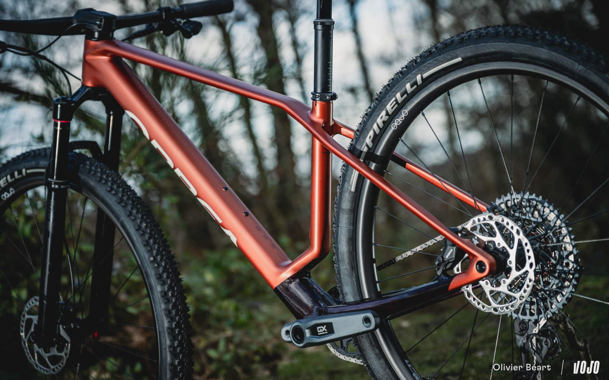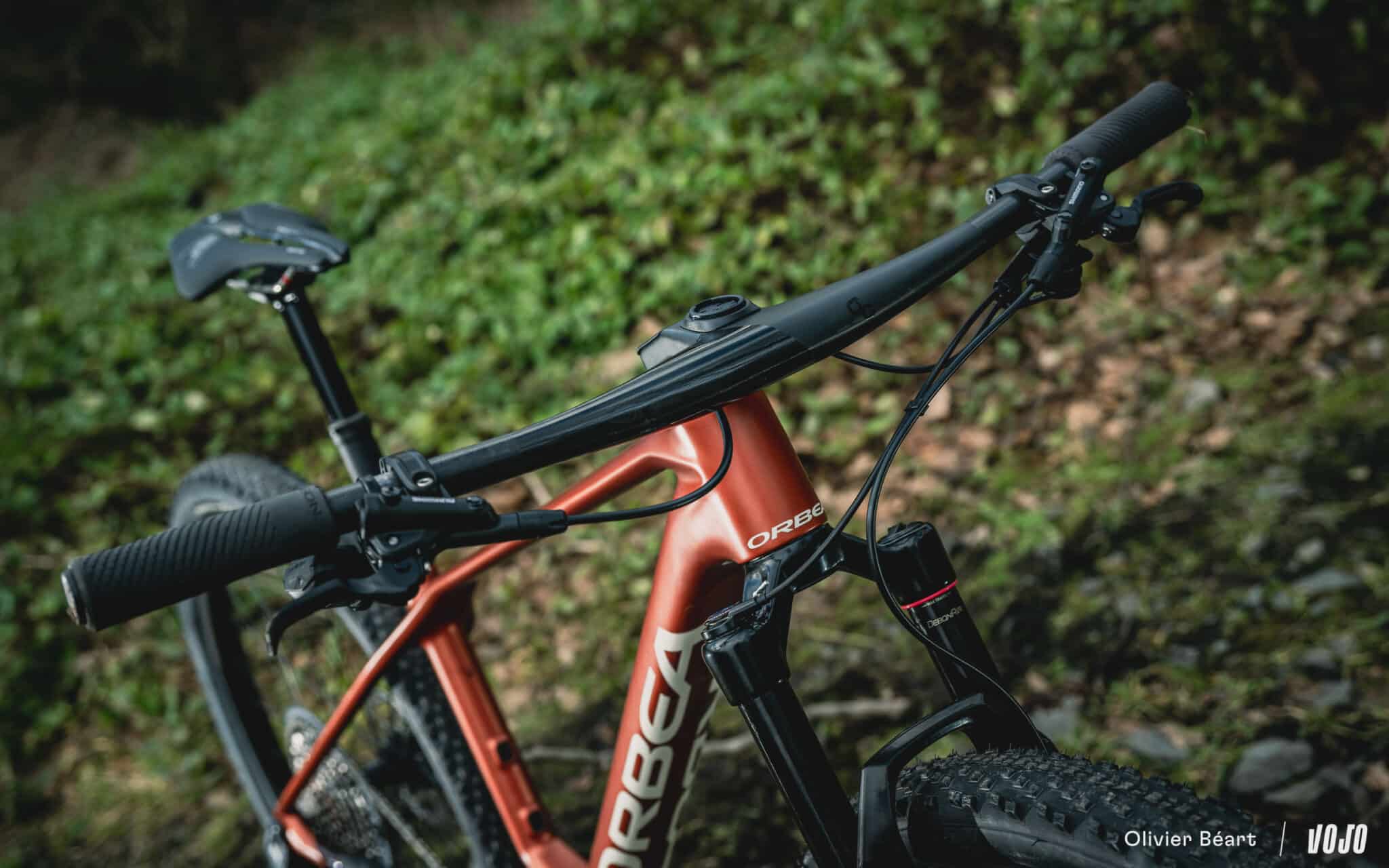 La géométrie contemporaine permet de bien lâcher les freins en descente et dans les portions techniques, et on sent clairement que le confort de la partie arrière a fait un bond par rapport à la précédente génération. Qui, il faut le reconnaître, restait à classer dans la catégorie des hardtails plutôt durs et exigeants. Ici, Orbea semble avoir bien réussi son pari de combiner des performances de haut vol avec une certains tolérance, voire même du confort. On a aussi apprécié de constater que ce n’est pas que le tube de selle qui filtre les vibrations et que, même debout sur le pédales, le cadre dans son ensemble se montre assez tolérant dans les portions cassantes.
