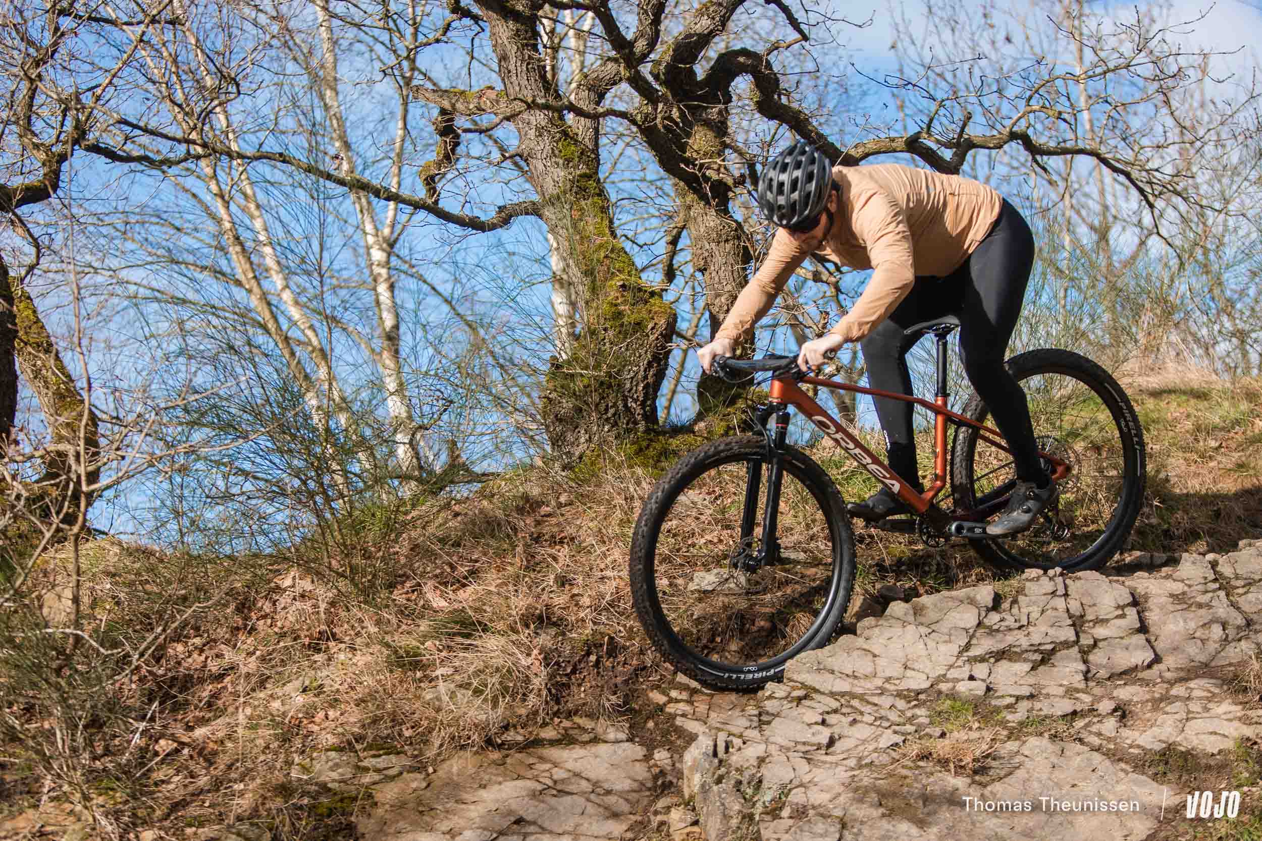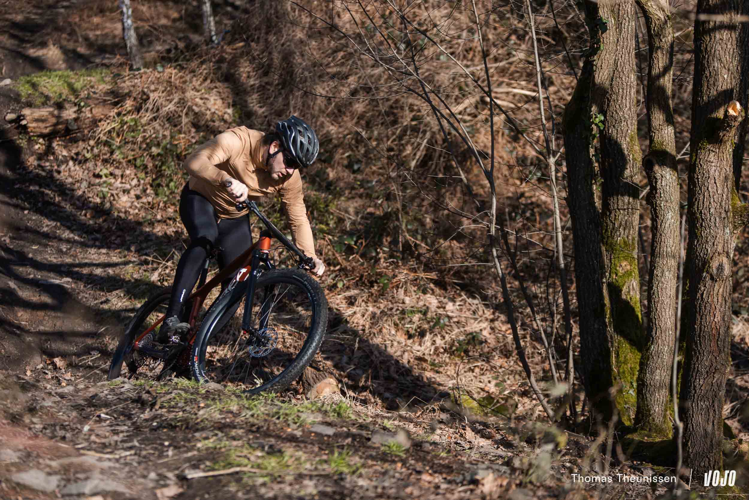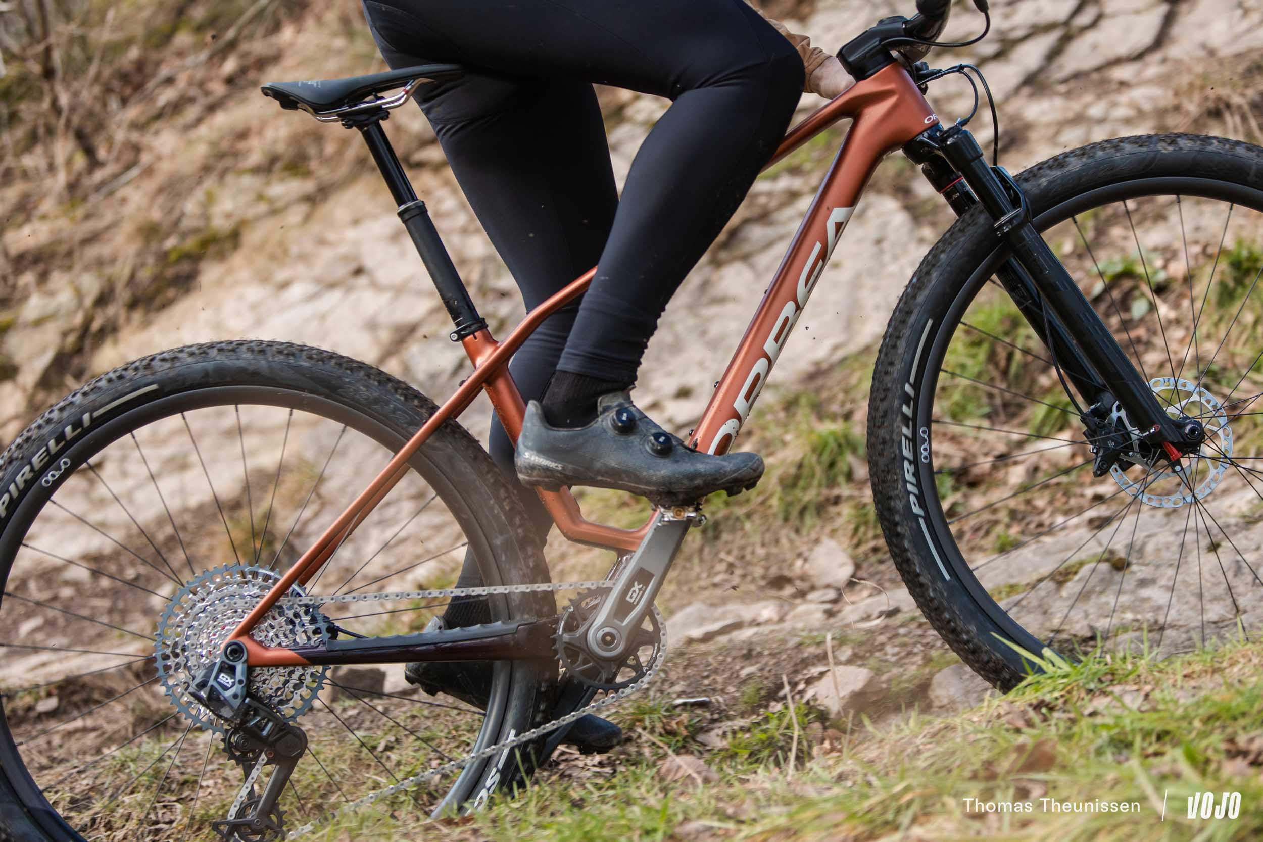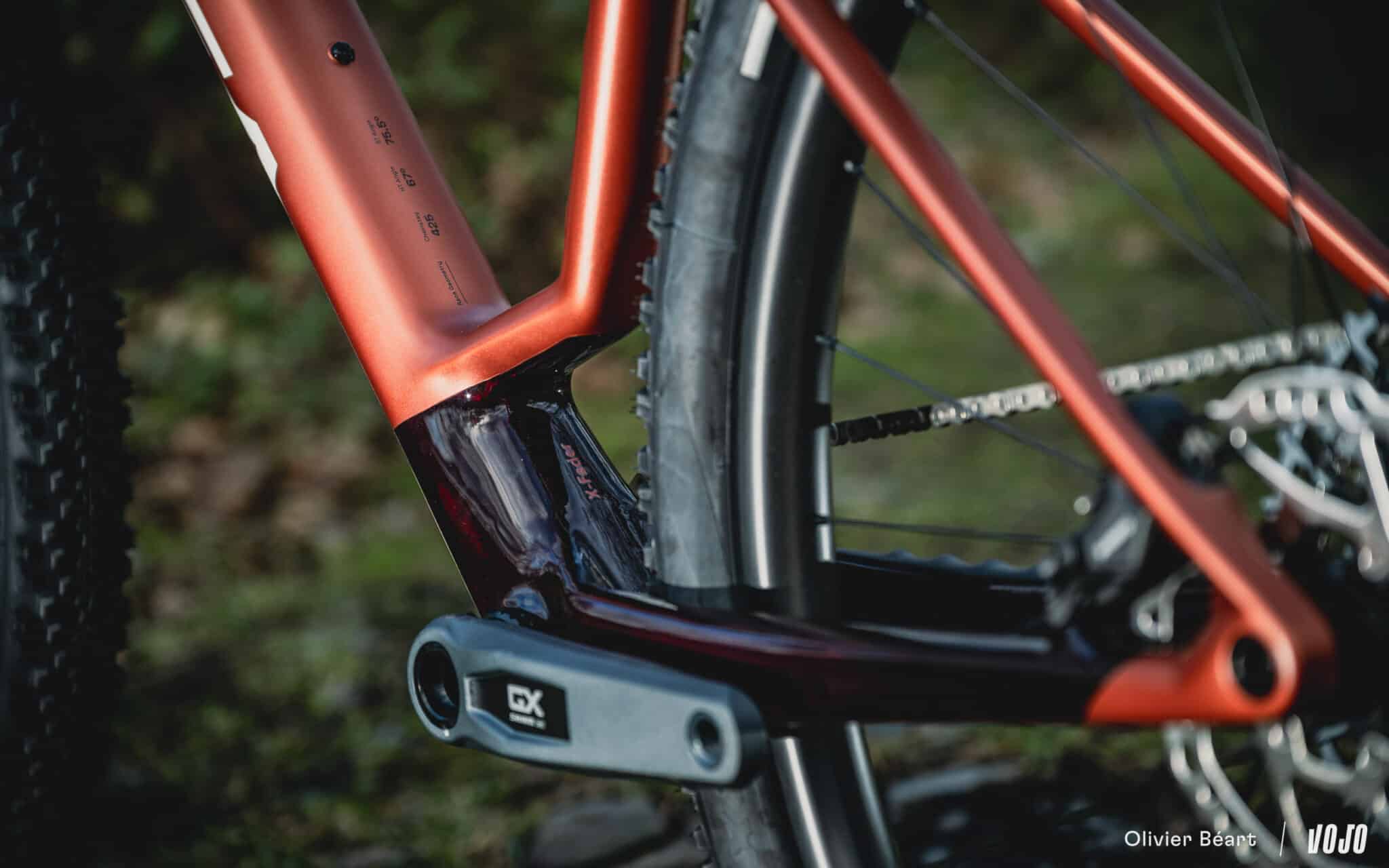 La géométrie contemporaine permet de bien lâcher les freins en descente et dans les portions techniques, et on sent clairement que le confort de la partie arrière a fait un bond par rapport à la précédente génération. Qui, il faut le reconnaître, restait à classer dans la catégorie des hardtails plutôt durs et exigeants. Ici, Orbea semble avoir bien réussi son pari de combiner des performances de haut vol avec une certains tolérance, voire même du confort. On a aussi apprécié de constater que ce n’est pas que le tube de selle qui filtre les vibrations et que, même debout sur le pédales, le cadre dans son ensemble se montre assez tolérant dans les portions cassantes.