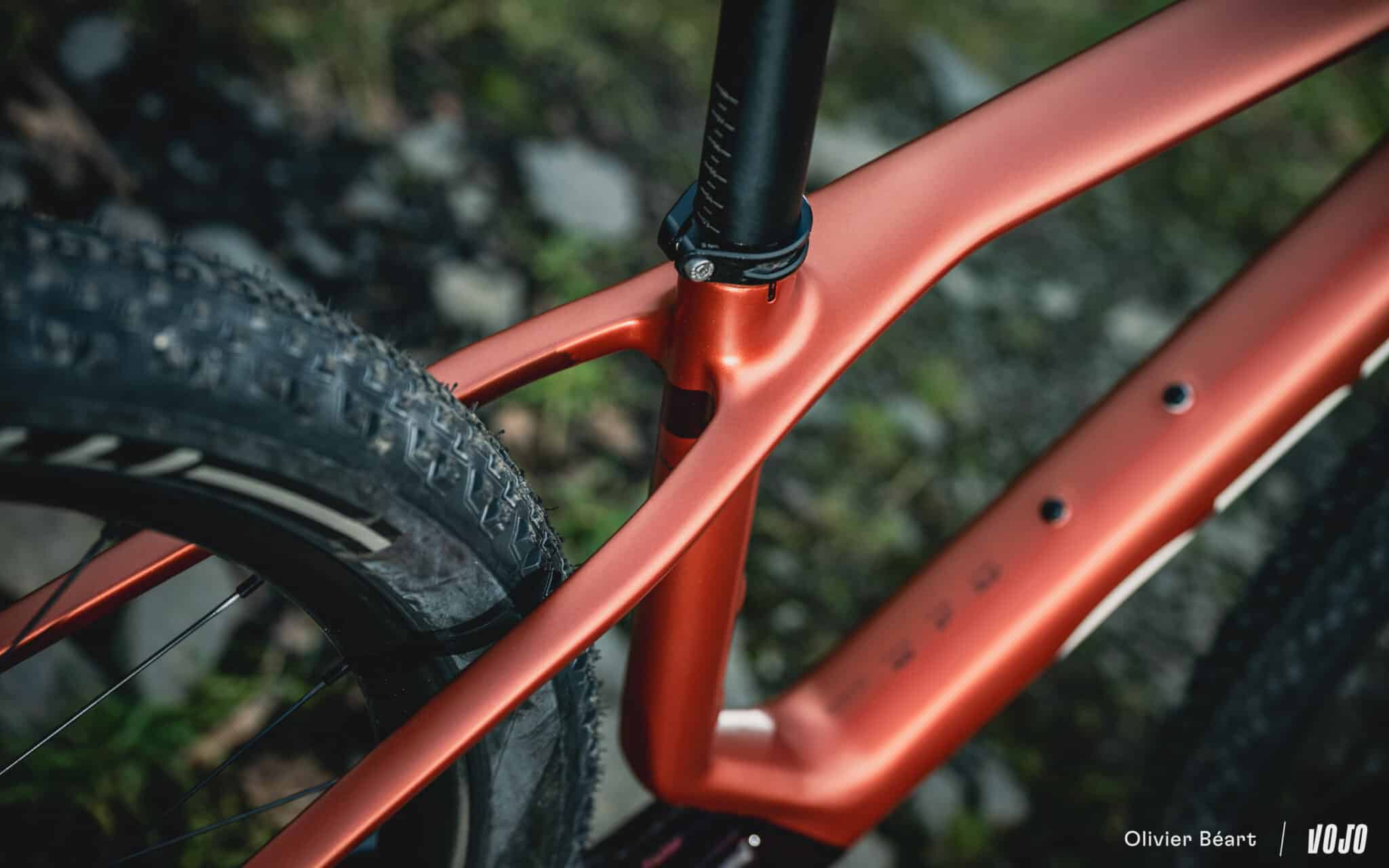 Il était aussi très important pour Orbea que ce tube de selle soit au diamètre 31.6 et que le cadre puisse accueillir une tige de selle télescopique (par définition assez rigide et pas du tout pensée pour filtrer les vibrations) tout en apportant du confort.
