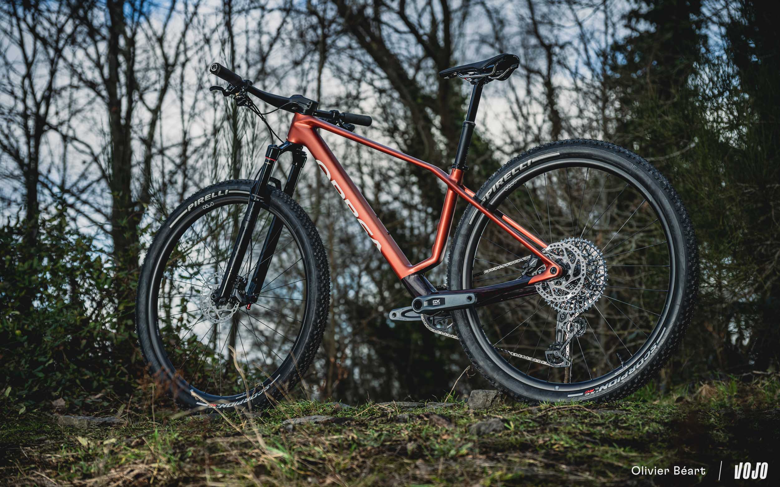 L’Alma M20 est affiché à 3299 € en fourche Fox 34 Performance Grip, transmission Shimano XT, freins Shimano MT 6100, roues Oquo alu MP28 Pro, tige de selle télescopique OC MP10 et pneus Pirelli Scorpion XC H Sport.