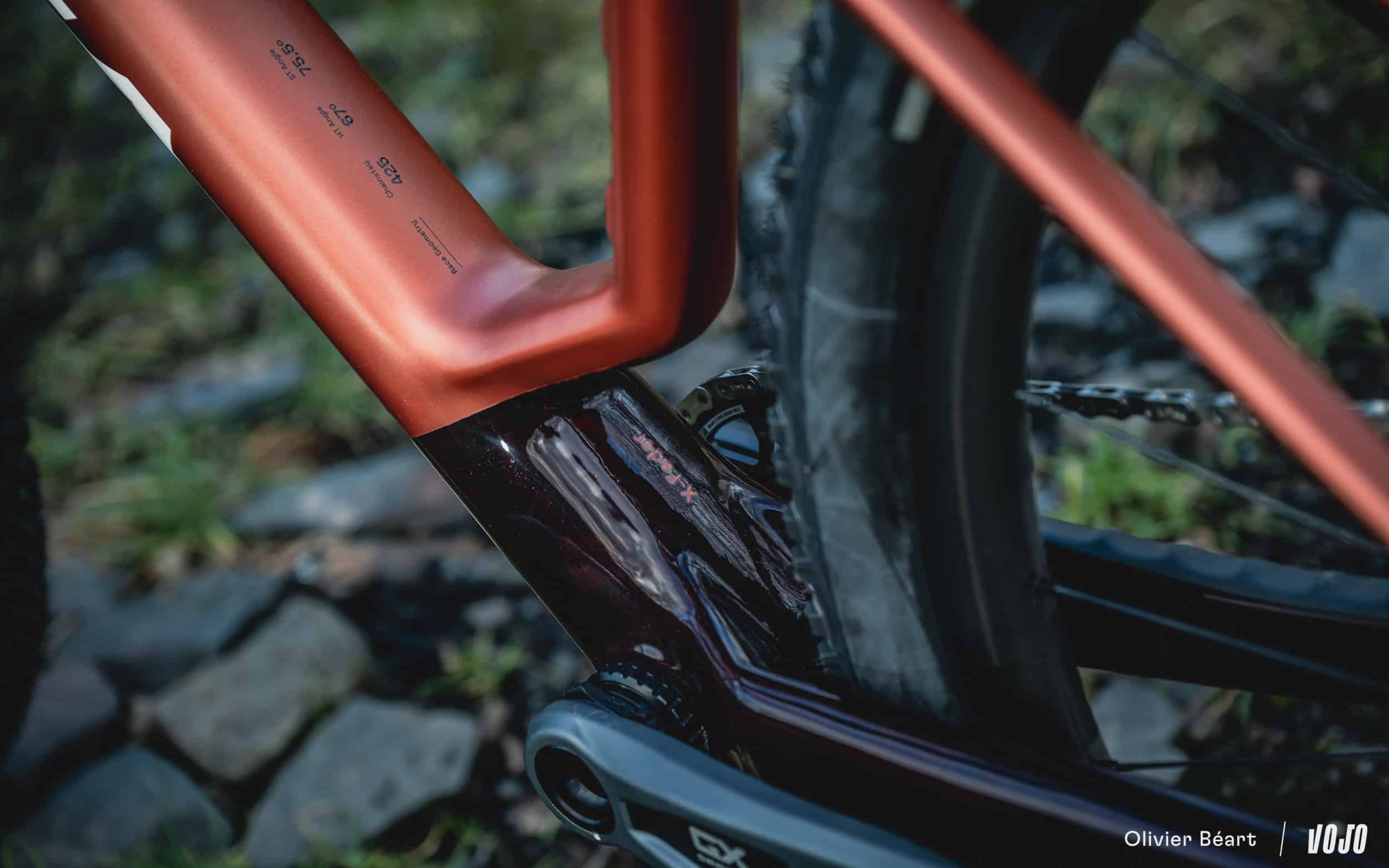 Côté formats, le cadre accepte des pneus de 2,4″ tout en conservant un dégagement confortable et le boîtier de pédalier est fileté pour faciliter la maintenance. La douille de direction dispose d’un « bloc lock » qui évite au cintre de venir en contact avec le tube supérieur en cas de chute.