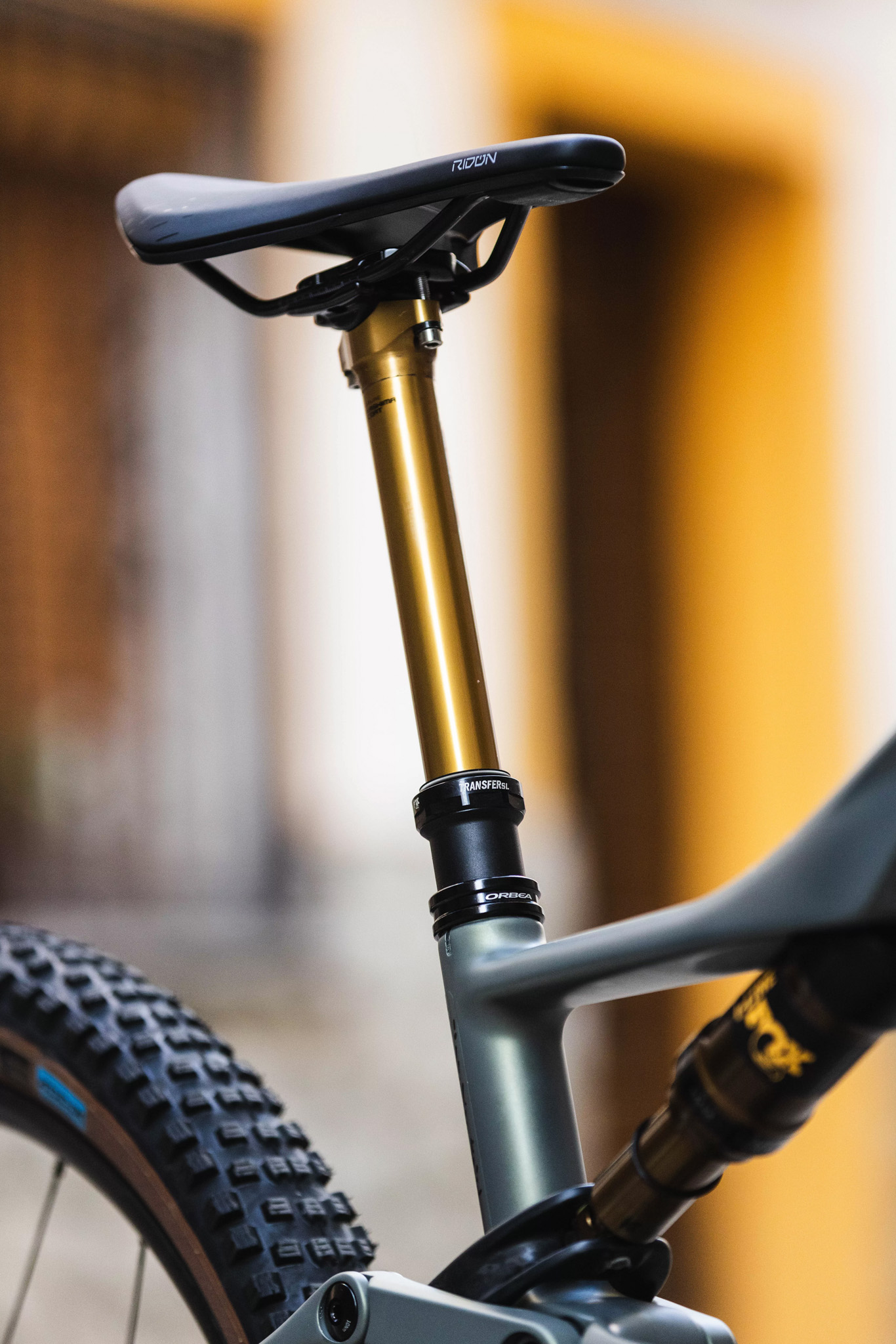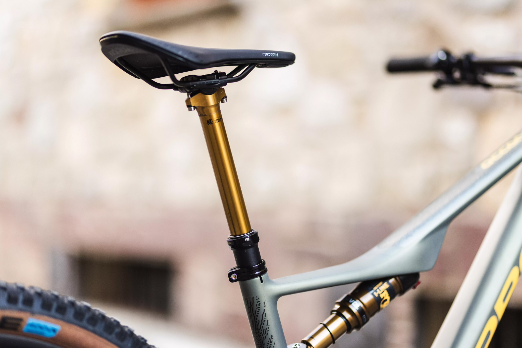 Premièrement, et peut-être la plus importante de toutes, Orbea a travaillé sur la longueur d’insertion des tiges de selle télescopiques pour permettre à toutes et tous de rouler le plus grand débattement possible. Ainsi, la taille S est équipée d’origine avec un modèle OC (pour Orbea Components) en 150 mm de course tandis que la taille M à droit à du 175 mm et la taille L à du 200 mm. Et encore, ce n’est que le montage de série.