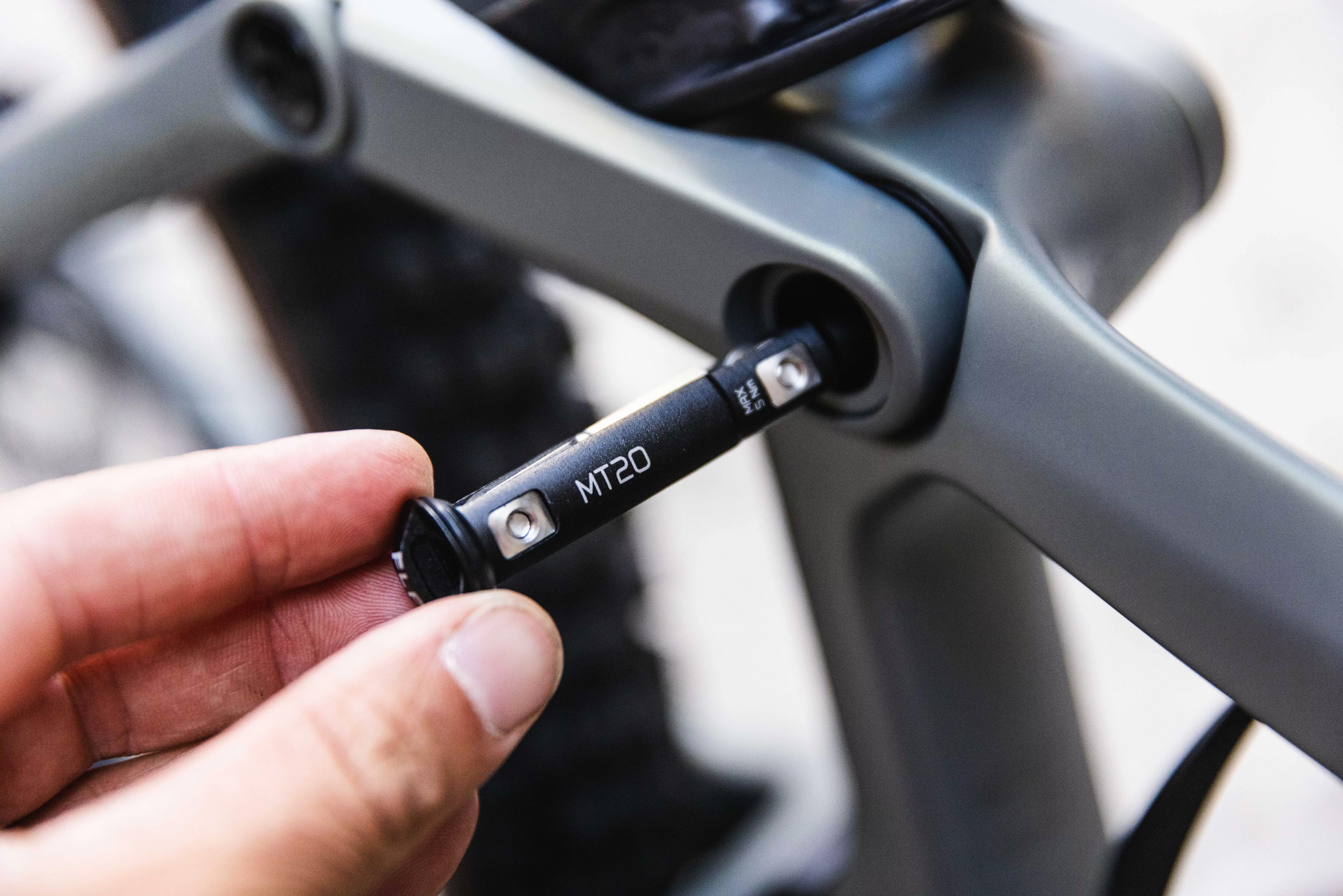 Le petit multi-outil FLP introduit (c’est le cas de le dire) lui aussi sur le Rallon puis sur l’Occam LT en 2021 a été conservé et se loge toujours dans le point de pivot de la biellette. Il rassemble les quatre clés hexagonales les plus utilisées (2, 3, 4 et 5 mm), auxquelles il faut ajouter la 6 mm du levier amovible de l’axe de roue arrière.