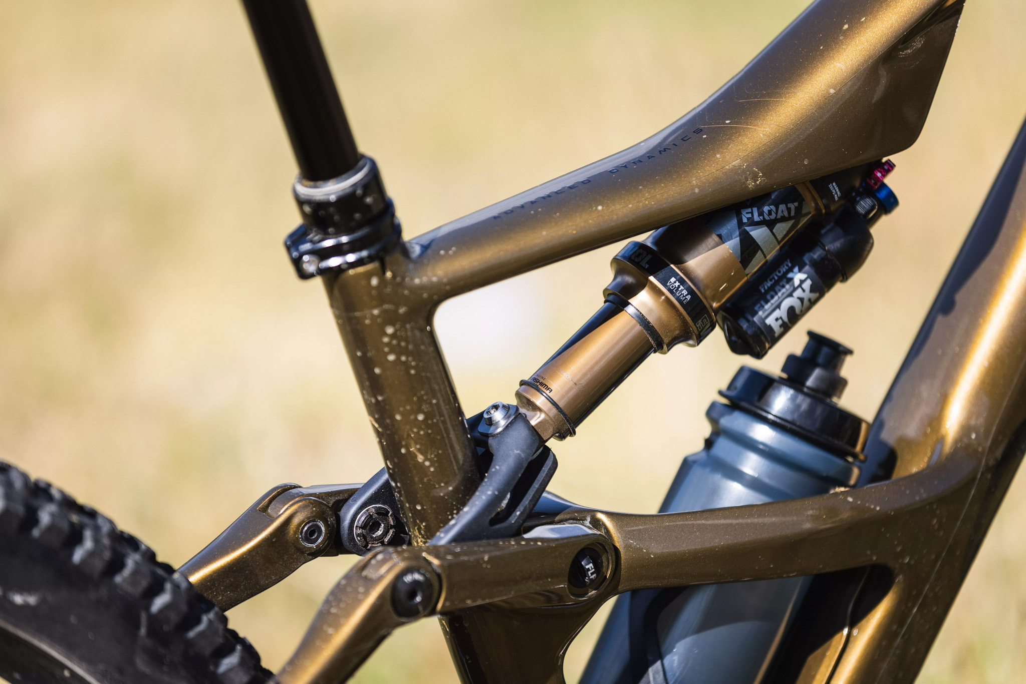 On a donc un vélo en 29“ et 140 mm de débattement devant comme derrière avec un angle de direction à 65,5° (-0,5°), un angle de tube de selle à 78° (+1°), un reach de 465 mm en taille M (+15 mm sur chaque taille), des bases de 440 mm (pas de changement) et un boîtier de pédalier à -37 mm (-2 mm).
