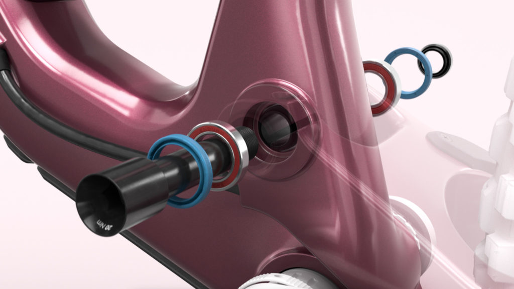 Pour la durabilité justement, Orbea a pu bénéficier d’années de retours terrain à très grande échelle pour le Rallon R5, et sur ce Rallon R6 la marque a décidé d’augmenter la protection des roulements du pivot principal pour les isoler des attaques des jets haute pression. La marque ajoute un joint supplémentaire et garantit ainsi une meilleure durée de vie.