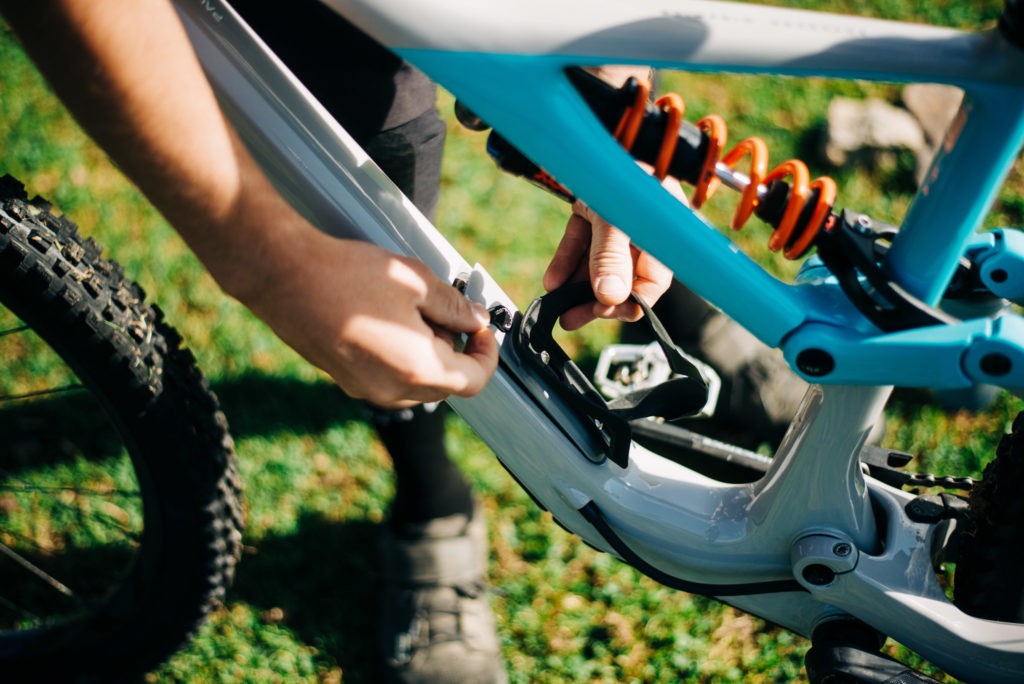 La construction du Rallon R6 a été complètement repensée, et on est heureux d’apprendre que la marque a travaillé sur la rigidité du châssis en carbone qui a pu surprendre les possesseurs de R5 sur les descentes les plus cassantes ou longues. Pour ce faire, la marque a travaillé avec un prototype construit le plus rigidement possible puis découpé sous son tube inférieur. Dessus, la marque est venue positionner une série de vis resolidarisant le tout. À chaque test, des vis étaient ajoutées ou supprimées pour s’arrêter sur le meilleur ressenti.