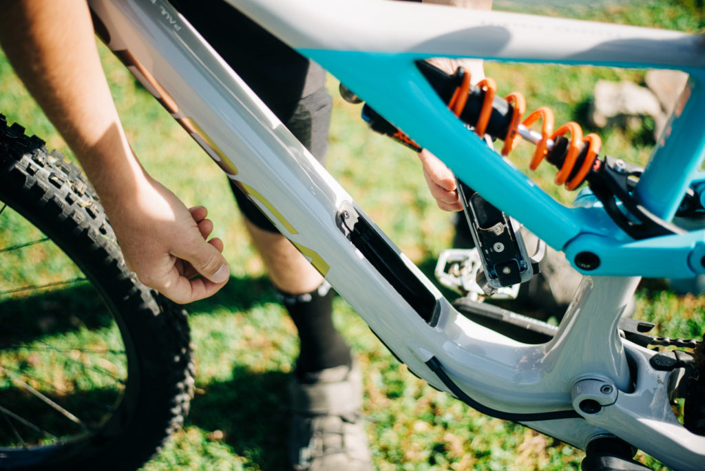 Au rayon des gadgets qui n’en sont pas, Orbea dévoile une petite trappe de rangement sur son Rallon R6. On avoue être toujours très séduit par ces options bien pratiques au quotidien. Là encore positionnée sous le porte-bidon, on y retrouve un emplacement pour un outil et quelques éléments. Une pochette en nylon et néoprène permet d’organiser le tout. La trappe est plus petite que sur un Specialized ou un Trek mais permet déjà de glisser l’essentiel de réparation pour le vélo.