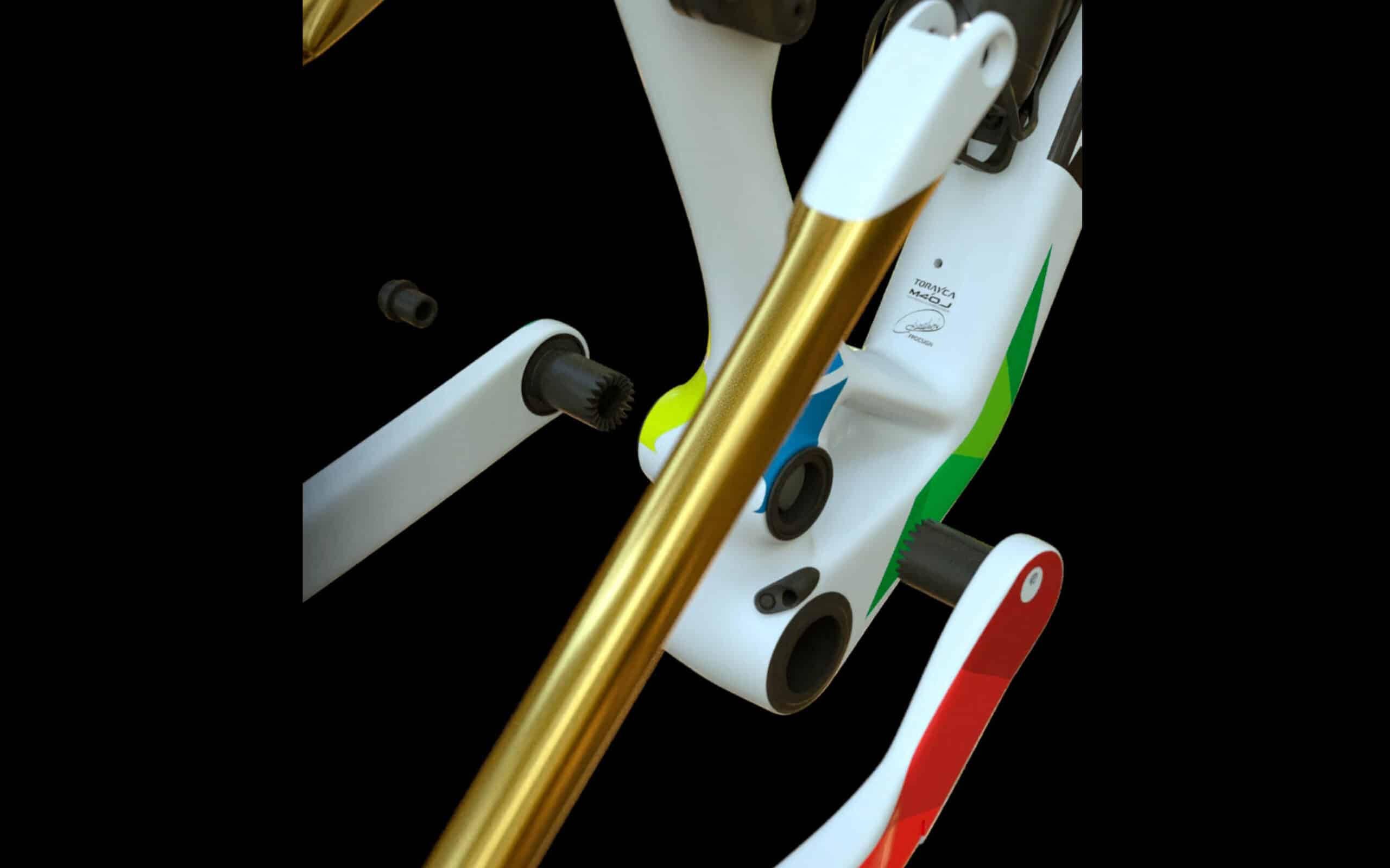 Le point de pivot principal est monté sur des roulements de gros diamètre, alors que ceux au niveau du yoke et de la biellette supérieure sont montés sur des bagues. Ces bagues sont, selon Pinarello, plus adaptées à des pivots de petite taille, qui ne bougent que sur quelques degrés. Ils occasionnent moins de frottements que des roulements à billes dans cette application, ils supportent mieux les contraintes et se montrent aussi plus légers et plus fiables.