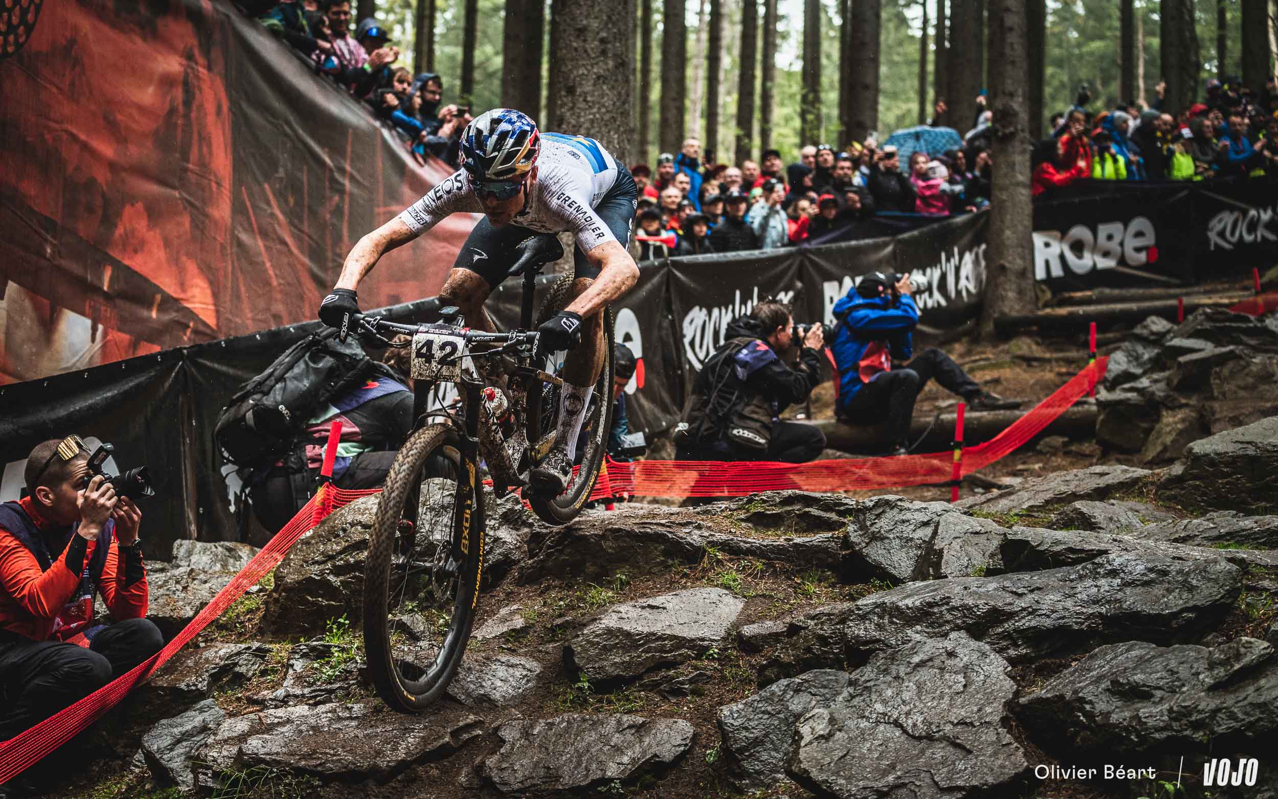 Le champion du monde et champion olympique est même très cash sur le sujet : « Je n’aime pas du tout ces gros vélos de XC en 120mm. Ok, ça marche en descente, mais je trouve cela beaucoup trop gros. Les circuits de XC sont techniques mais quand même pas extrêmes. Et ça donne des vélos trop peu réactifs, patauds, qui absorbent les chocs mais aussi trop d’énergie du pilote. Je ne remets pas en cause l’intérêt du tout-suspendu et je ne roule quasi jamais en hardtail, mais je voulais un vélo dont la suspension se montre peu impactante sur le pédalage et avec un débattement réduit, tout en pouvant évoluer selon les circuits. »