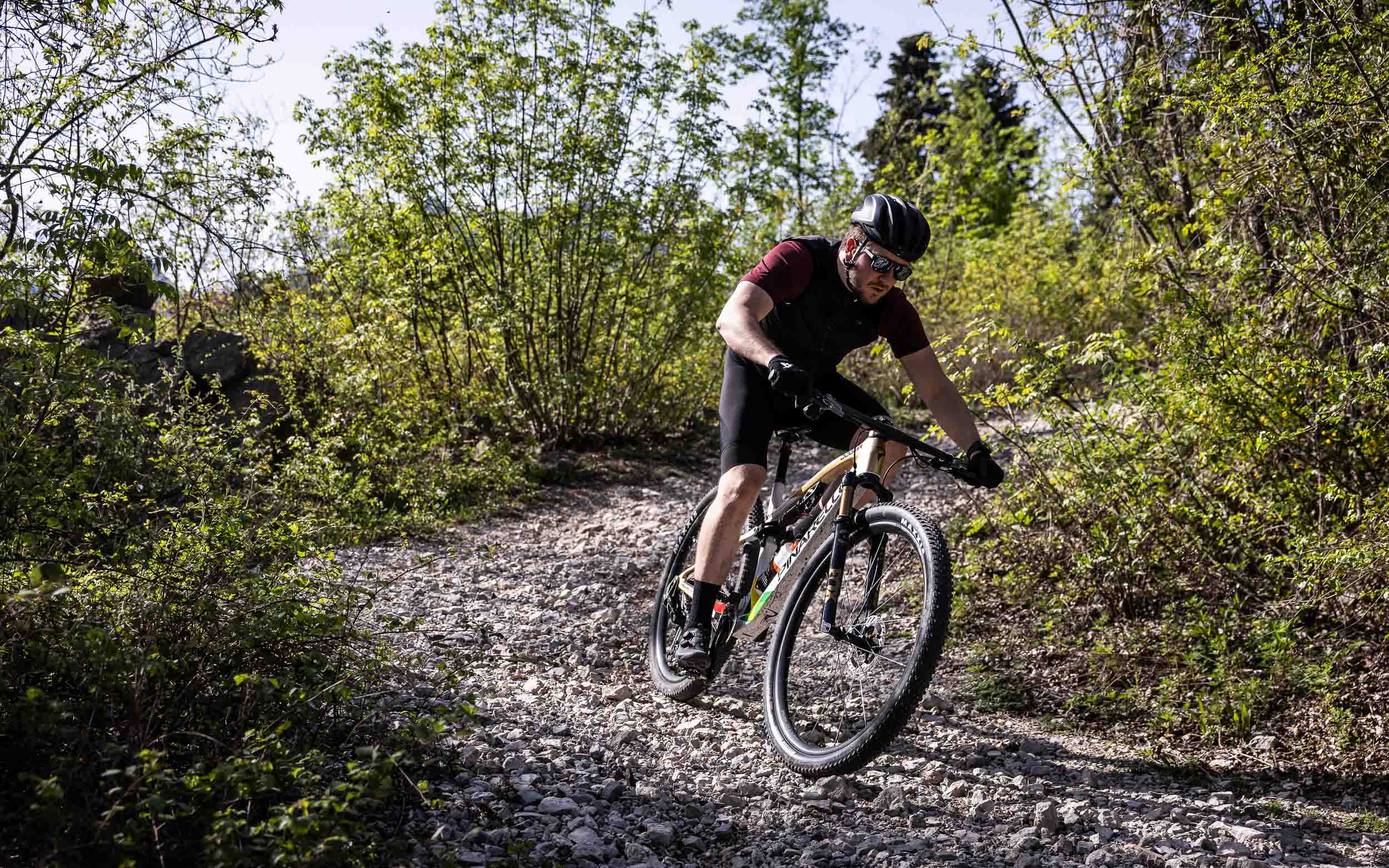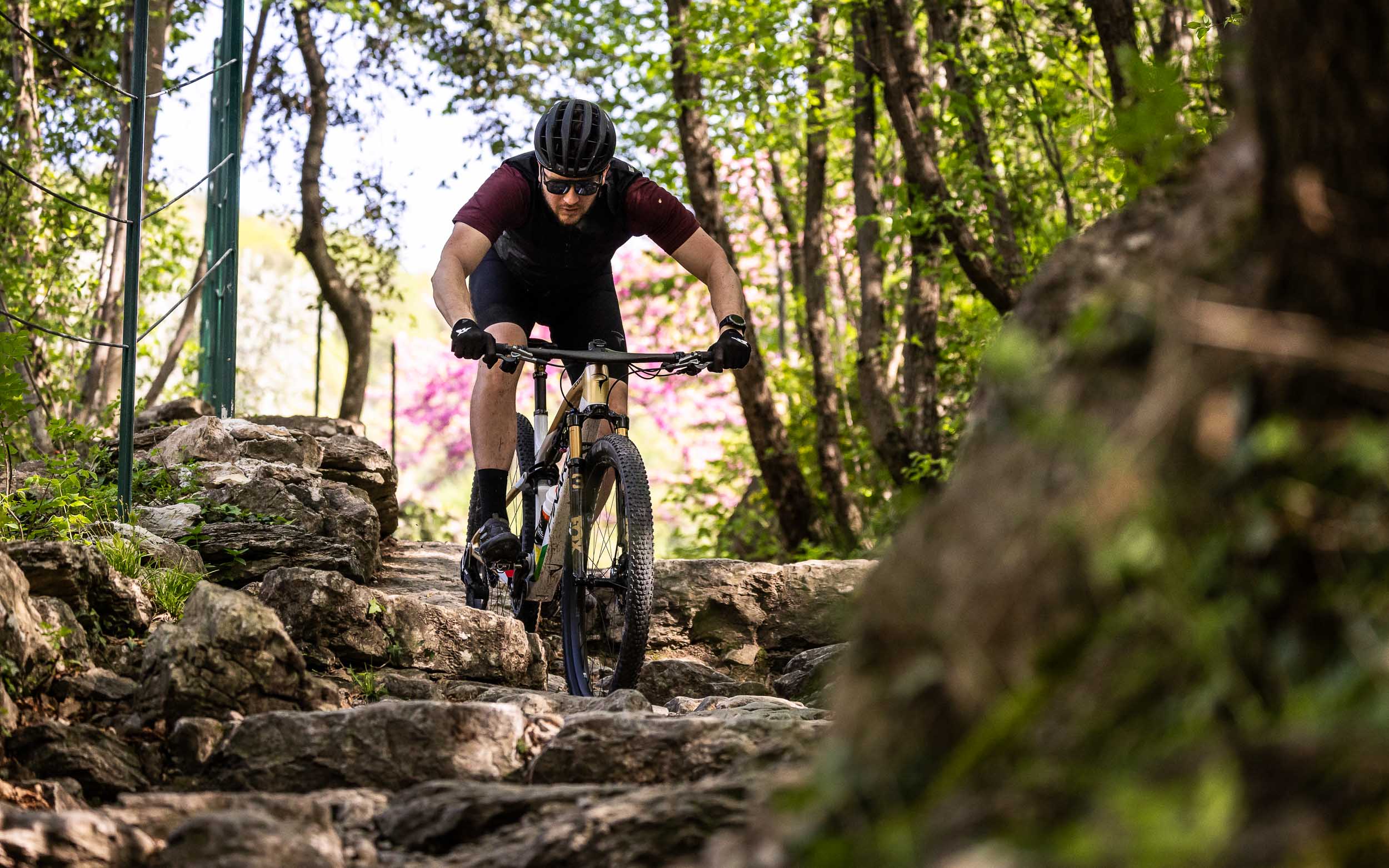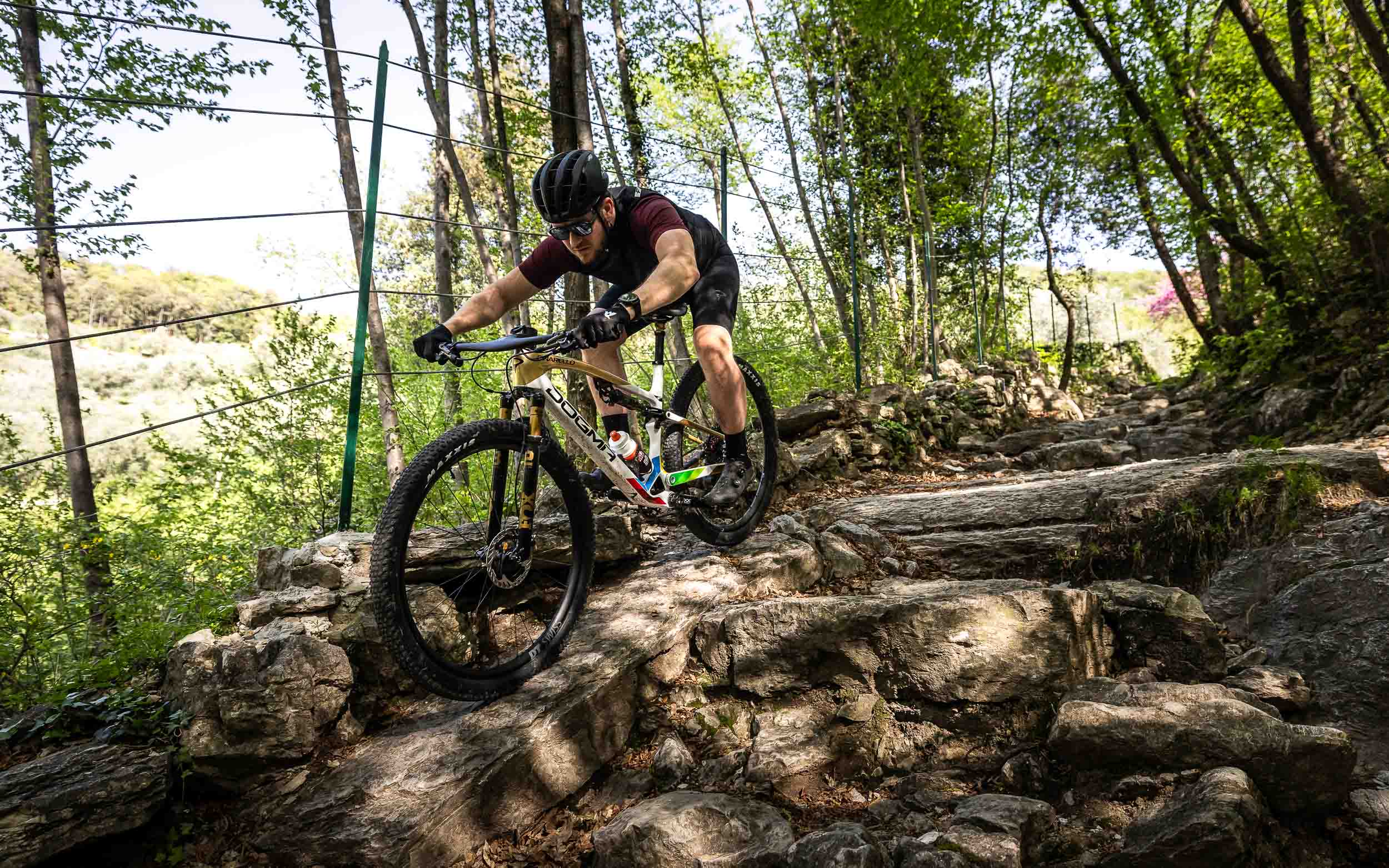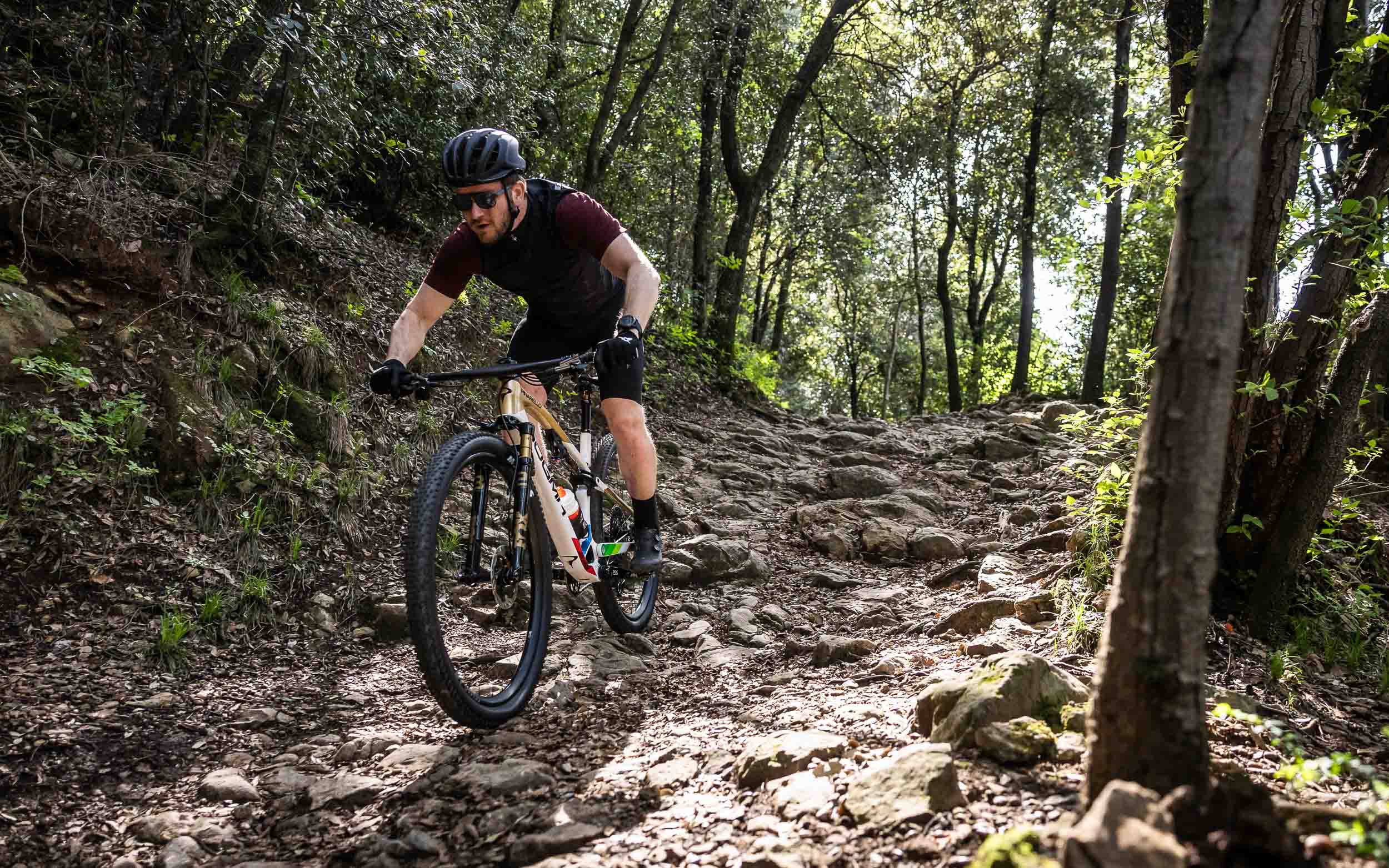 En montée technique, la suspension arrière offre un excellent maintien de l’assiette même en restant en position ouverte et n’a absolument pas tendance à s’affaisser, tout en procurant un bon grip à la roue arrière. Un vrai vélo de XC contemporain, à l’aise dans le technique !