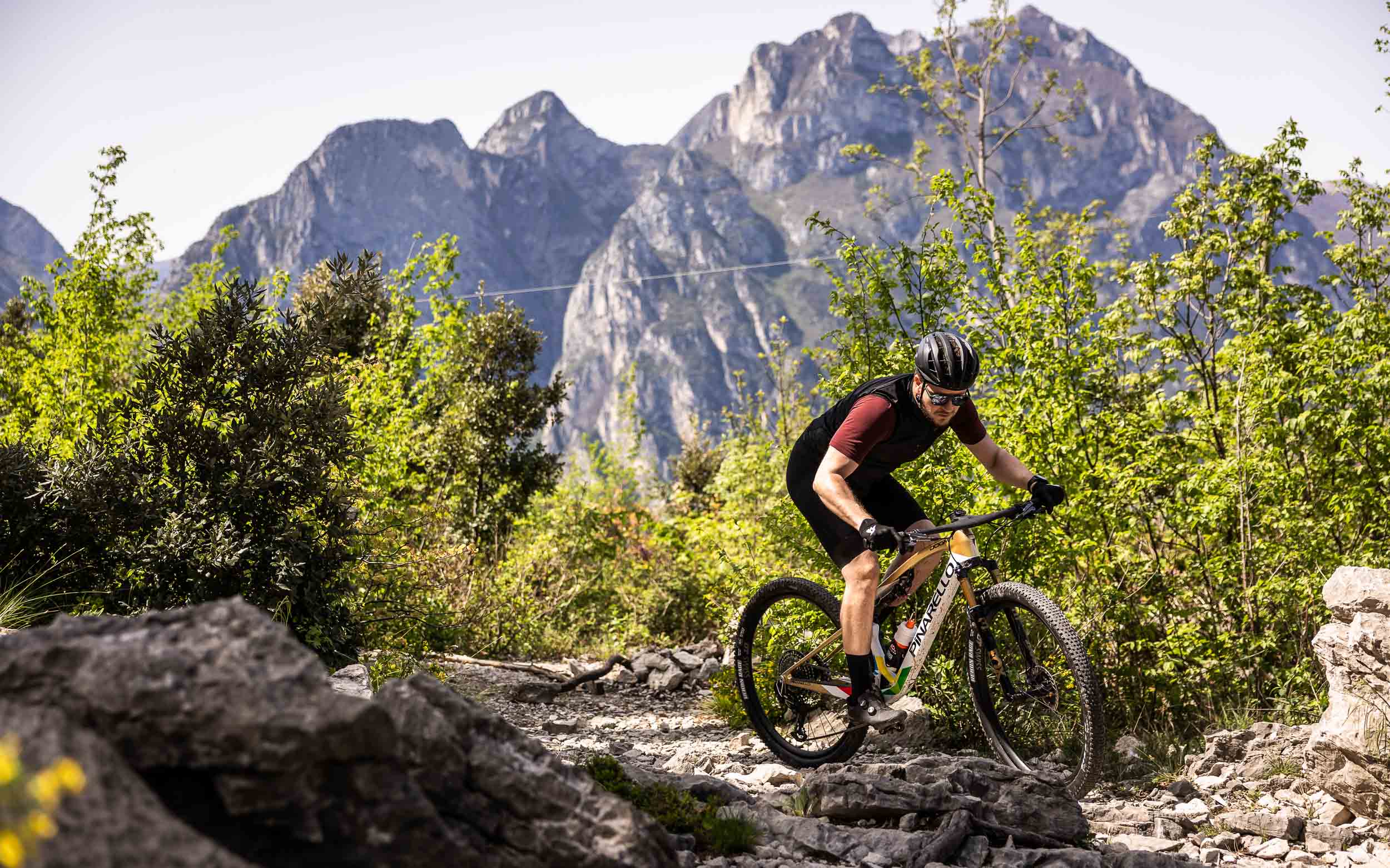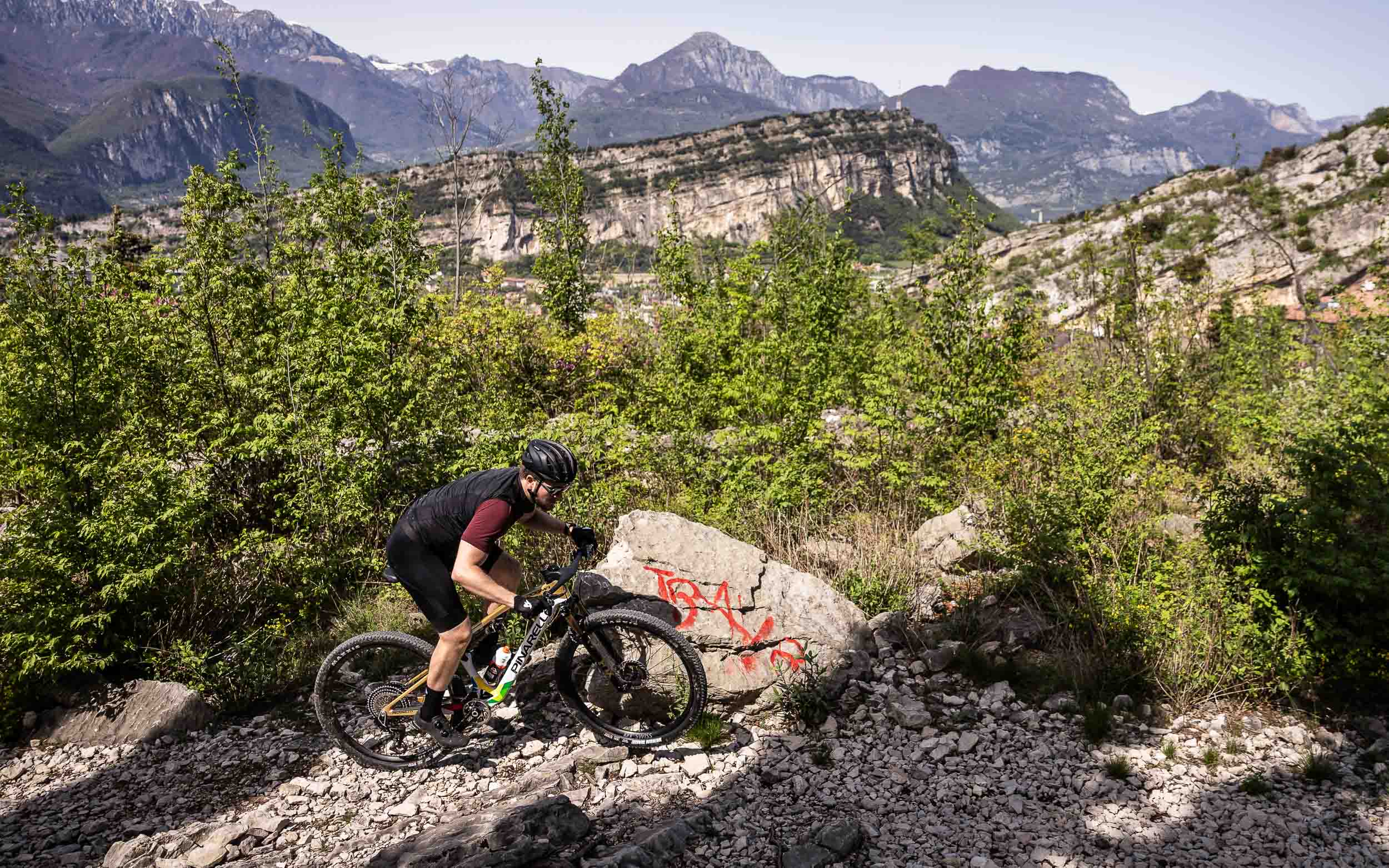 Nous avons eu l’occasion de tester le nouveau Pinarello Dogma XC sur deux sessions de 2h tout près du Lac de Garde, en Italie. Pas de quoi prétendre avoir réalisé un vrai test complet, mais déjà assez pour un premier aperçu du caractère de l’engin. Nous n’avons roulé que le tout-suspendu et pas (encore) le semi-rigide. Mais ça viendra ! A noter que nous avons essayé le vélo en taille L, qui s’est avéré grand pour nos 178cm. Nous avons réussi à le rouler et à avoir des sensations sur le vélo, mais un taille M aurait clairement été plus adapté. La marque ne disposant que d’un nombre très limité de vélos, nous n’avons hélas pas pu changer lors de ce premier contact.