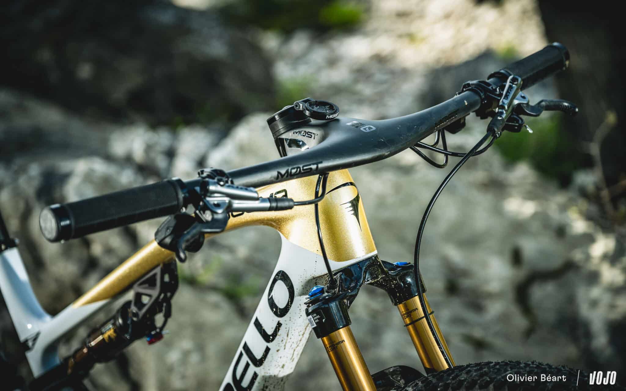 Avant de parler des périphériques plus classiques, le poste pilotage intégré Most Talon Ultra XC attire inévitablement le regard. Le responsable du développement nous explique : « Pour nous, c’est un incontournable en matière de rapport poids-rigidité et un véritable plus au niveau de la précision de pilotage. Nous avons donc profité de notre expérience sur la route et de notre marque de composants Most pour proposer cet ensemble cintre/potence entièrement en carbone, qui intègre aussi les câbles et Durit pour dégager au maximum le champ de vision du pilote. »