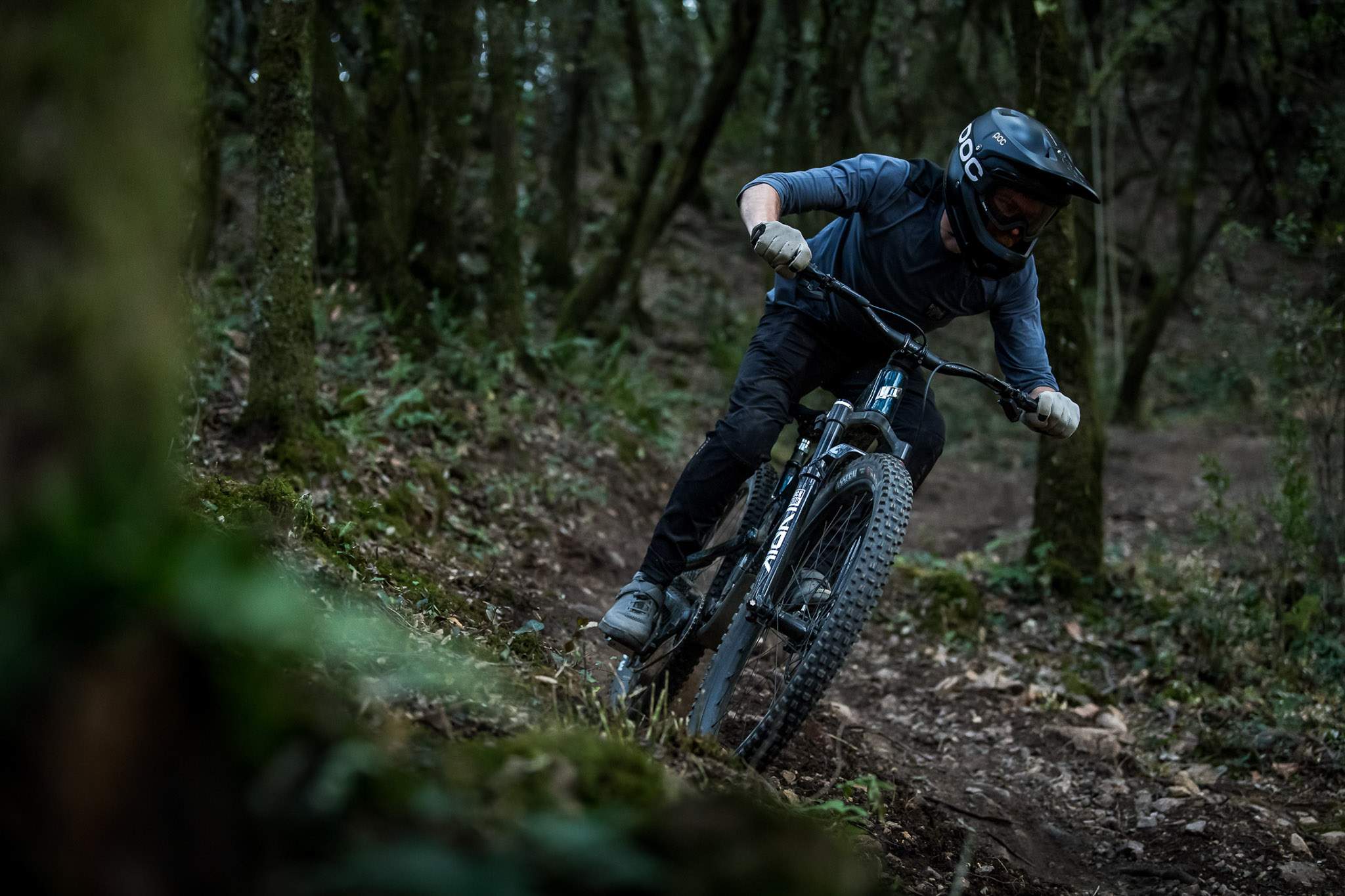 En descente, c’est un peu différent. Pour le coup, le montage avec la fourche en 160 mm sur le Tyee CF ne nous a pas vraiment séduits car il donne des sensations trop « all-mountain » justement, le vélo ne met pas vraiment en confiance dans la pente. C’est plus exigeant à piloter et ça demande plus d’engagement de la part du pilote qu’avec la fourche en 170 mm. Les enduros modernes, ça a tout de même quelques avantages… Résultat, on pense qu’à part dans une optique de chasse au poids pour de grosses aventures à la pédale de plusieurs jours, la fourche en 160 mm n’a pas vraiment d’intérêt sur ce Tyee.