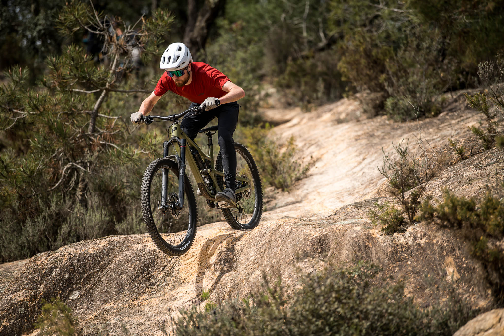 Le toucher et la sensibilité apportés par le ressort hélicoïdal amènent aussi plus de confort, à condition d’avoir choisi le bon ressort bien sûr. A ce sujet, on aurait peut-être aimé avoir un poil plus de progressivité car on a eu l’impression que l’idéal serait d’avoir deux ressorts différents : un pour tous les jours et les sorties plaisirs et l’autre un niveau de dureté au-dessus pour la course et les sessions les plus engagées. Le travail sur la progressivité aurait-il favorisé un peu plus les amortisseurs à air ? Impossible d’en être sûr sans pouvoir comparer avec l’ancien modèle mais cela pourrait demander quelques approfondissements.