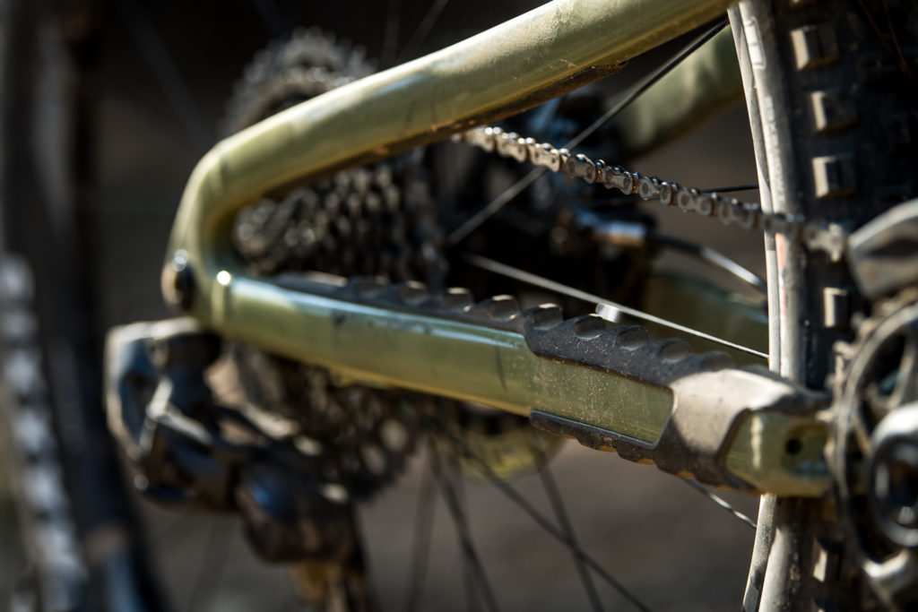 La suspension évolue de la même façon, par petites touches. Le Tyee conserve ainsi l’architecture Pro10 à point de pivot virtuel et les caractéristiques générales de sa cinématique, comme un anti-squat plutôt élevé pour la catégorie (113 % au sag) afin de pouvoir pédaler confortablement sans avoir à bloquer l’amortisseur. En revanche, elle se veut un peu moins progressive pour exploiter plus facilement l’entièreté du débattement.
