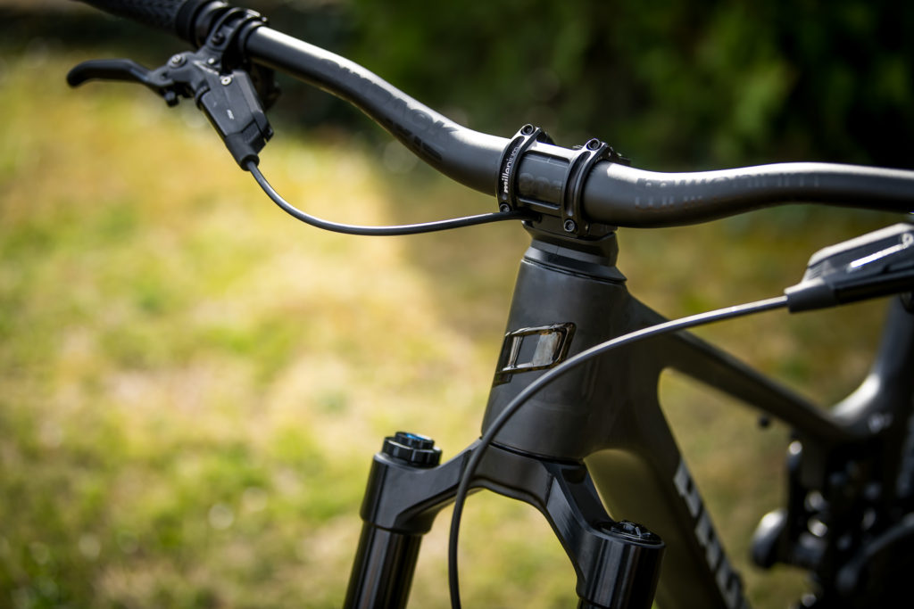 A l’avant, le Tyee devient le premier Propain a adopter les entrées de gaines via le jeu de direction. La position de la marque a d’ailleurs évolué sur le sujet comme l’explique Robert Krauss : « Au début je n’en voulais pas pour les mêmes raisons que tout le monde, mais j’ai appris à le comprendre et à l’aimer. Ça a des bons côtés et des mauvais côtés et on l’a choisi pour les bons côtés : le silence avec les gaines qui ne font plus de bruit et l’apparence, c’est plus discret sur le vélo. »