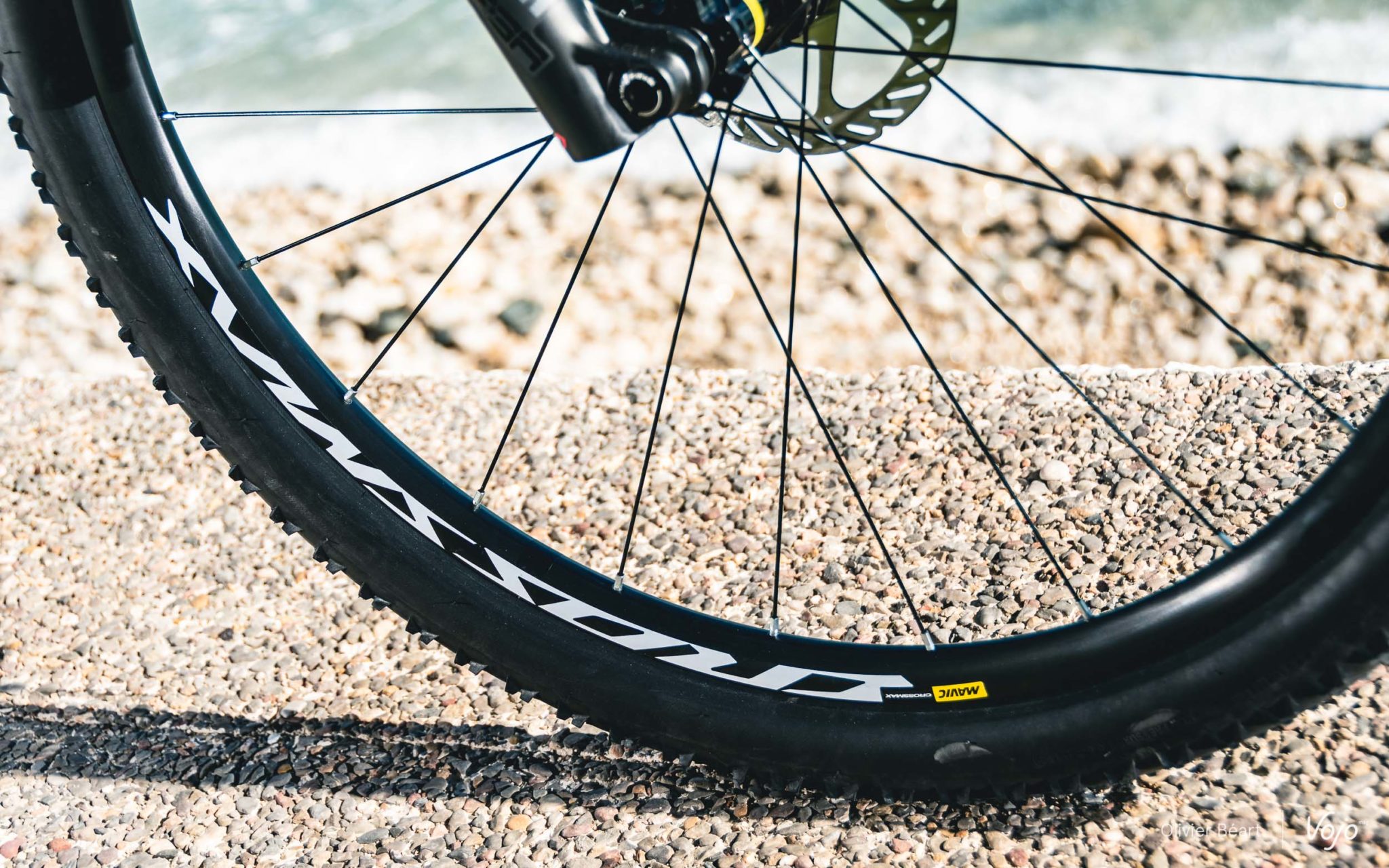 Les roues jouent aussi la carte du compromis. Pour le prix, c’est déjà bien de disposer de Mavic CrossMax avec des jantes de 25mm de large adaptées au programme. Elles ne sont cependant pas légères et à 1930g la paire, on a là une belle piste d’allègement de la machine. Les pneus Hutchinson Skeleton en 2.1, légers, plutôt solides et au rendement excellent, rattrapent bien le coup au niveau de l’inertie et donnent un petit coup de boost aux performances.