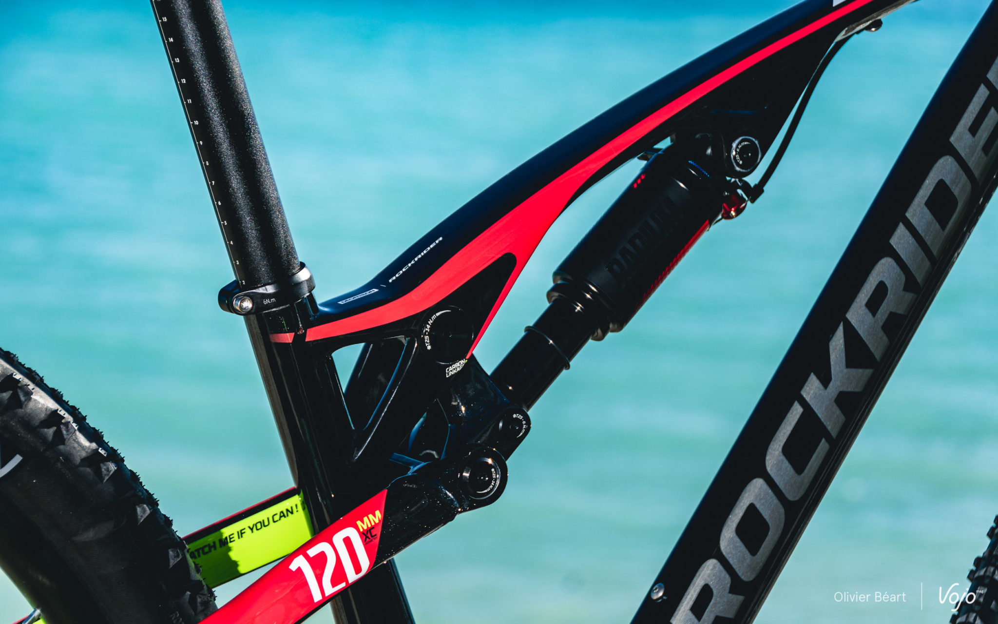 Destiné à une pratique XC/Marathon, il dispose d’un triangle avant et d’une biellette en carbone. Le triangle arrière, repris du XC100S, reste en alu, mais Rockrider annonce un poids de 2200g pour son cadre sans amortisseur, ce qui reste un joli score… surtout au vu du tarif ! La marque reste en effet fidèle à son habitude de rapport qualité/prix très agressif en proposant le vélo complet tel que montré ici à 1899€ !