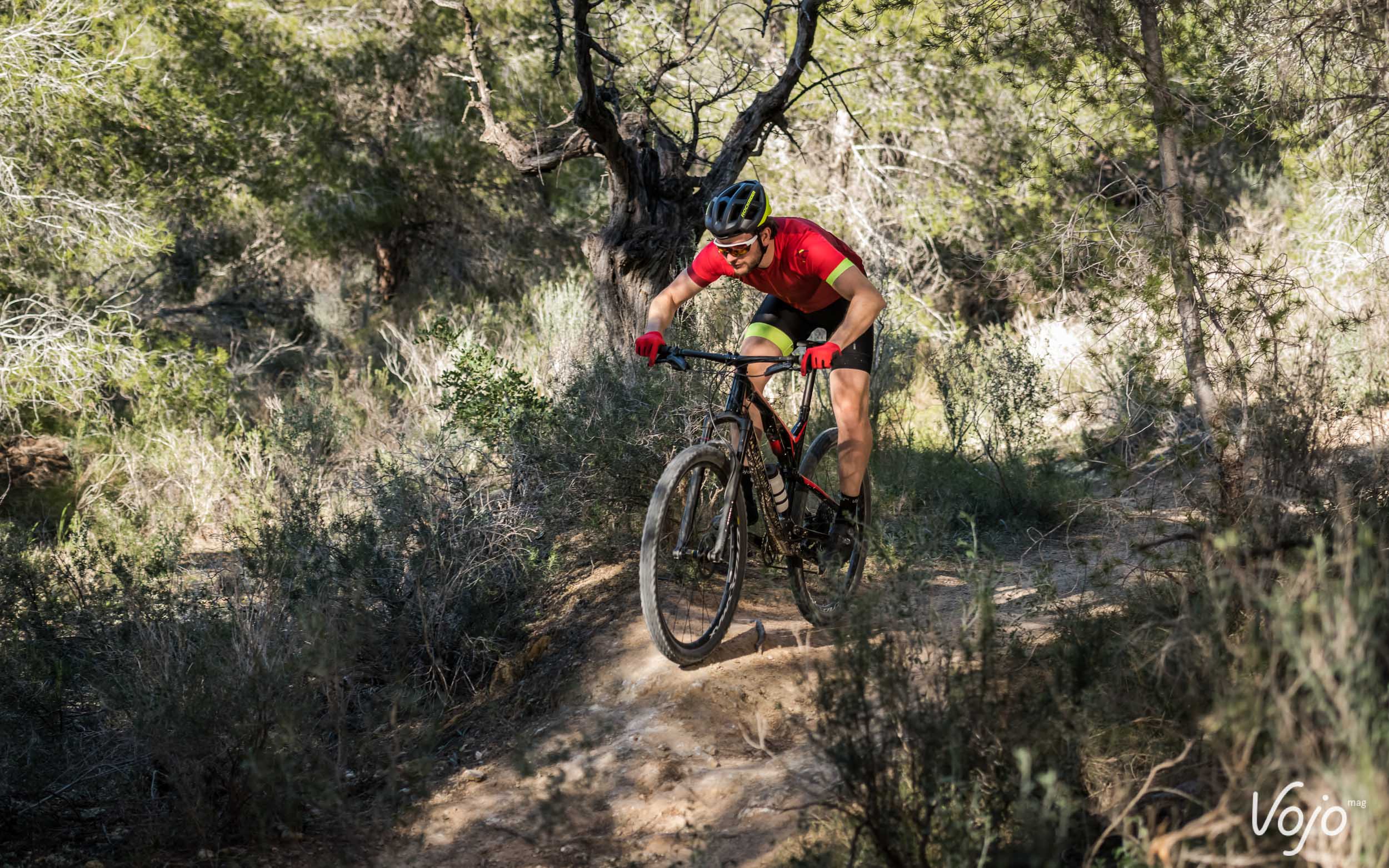 Comme pour les semi-rigides carbone XC900 et XC920, notre première prise en main a eu lieu en début d’année dans la région d’Altea, en Espagne, sur des chemins secs, poussiéreux et très rocailleux. Nous avons été accueillis par la petite équipe d’une dizaine de personnes en charge de la marque et du développement de ce modèle. Même si cette première prise en main a été brève (une demi-journée et une trentaine de kilomètres), nous avons déjà eu l’occasion d’en tirer quelques premiers enseignements.