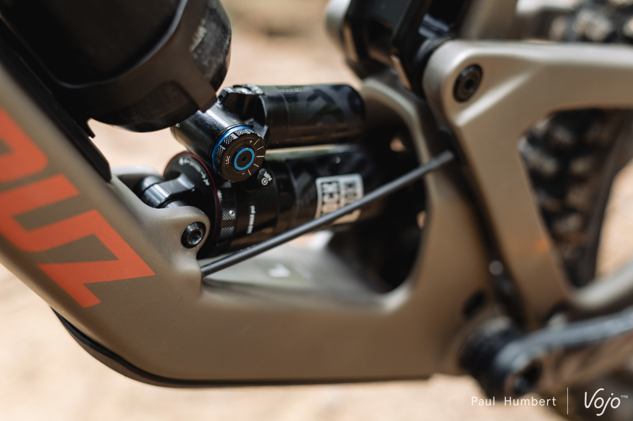 De plus, on dispose désormais d’un réglage de la compression hautes vitesses, sur 5 clics et avec une clé hexagonale de 3 mm. La molette de la compression BV (5 clics également) a elle migré sur le côté et rappelle celle de la fourche, tandis que le rebond (15 clics) est toujours ajustable avec la grande « roue » tout en haut de l’amortisseur.