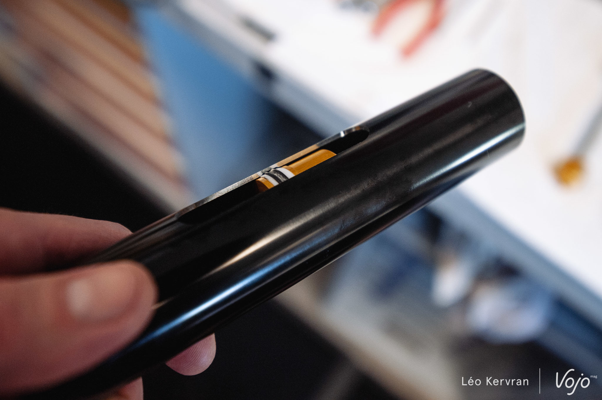 On passe à l’intérieur et côté cartouche, avec l’autre gros morceau de ce lancement : la Charger 3. Entièrement nouvelle, elle abandonne la membrane de la Charger 2.1 et passe sur un piston flottant bien plus classique. « La membrane avait l’avantage d’avoir moins de frottements », nous explique Dimitri Grekoff, RockShox Specialist, « mais on a tellement progressé sur le ressort et avec les nouvelles bagues de guidages ces dernières années qu’on peut se permettre de retourner sur un IFP, qui est quand même plus performant et plus fiable ».