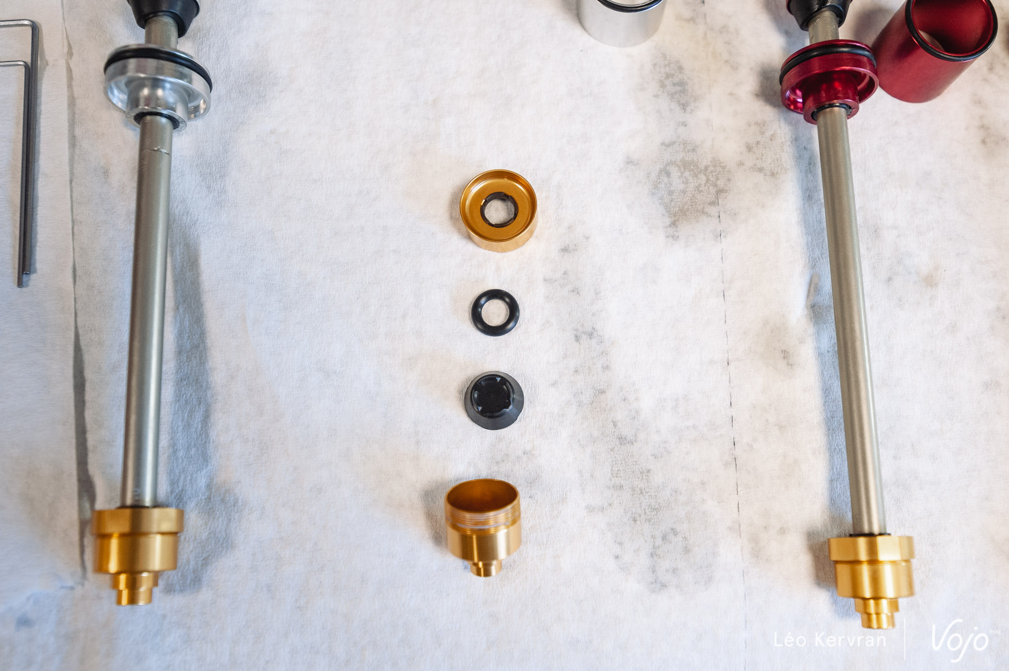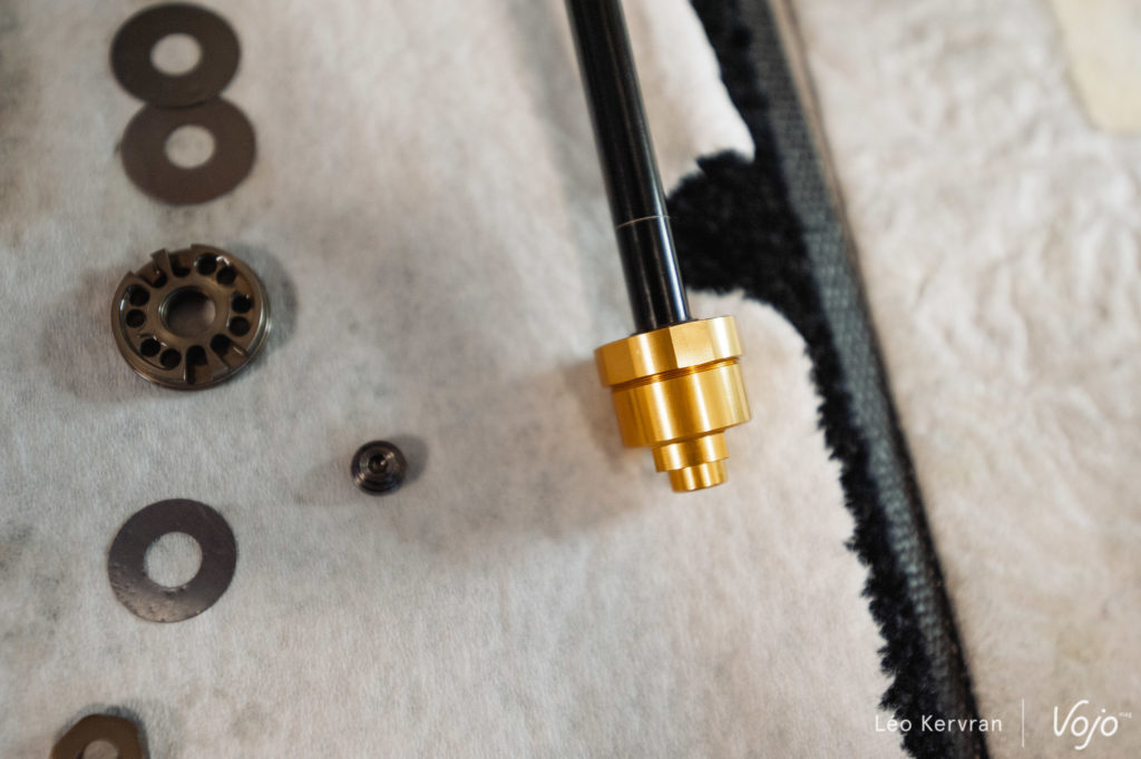 La deuxième nouveauté est la possibilité d’installer un token dans la chambre négative. Quel intérêt ? En réduisant le volume de cette chambre, on perd un peu en sensibilité sur les petits impacts mais on accède plus facilement aux derniers millimètres du débattement. D’ailleurs, en parlant de token, notez que ceux de la chambre positive changent eux aussi : ils sont plus fins et on peut en empiler jusqu’à 4, contre trois pour les anciens.