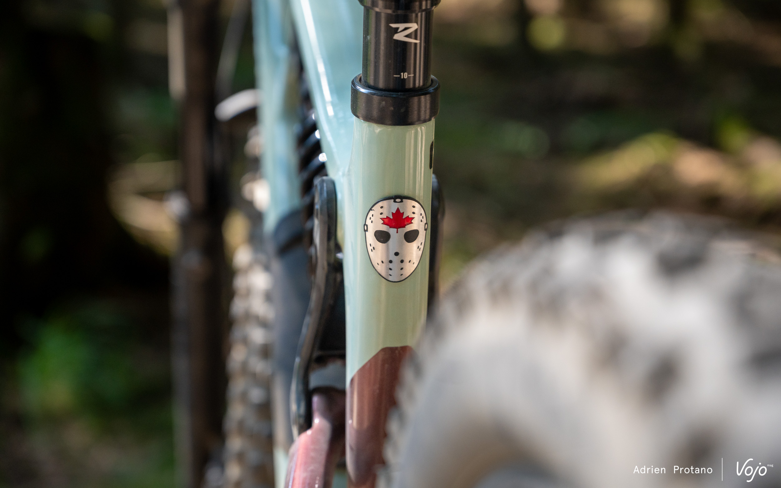 Le petit détail qui va bien : le masque de Jason Voorhees dans le film d’horreur « vendredi 13 », signature du modèle. Petite référence au hockey également, très populaire au Canada, et qui explique pourquoi Rocky Mountain a nommé sa boite à gant « PenaltyBox », à savoir le banc de pénalité au hockey.