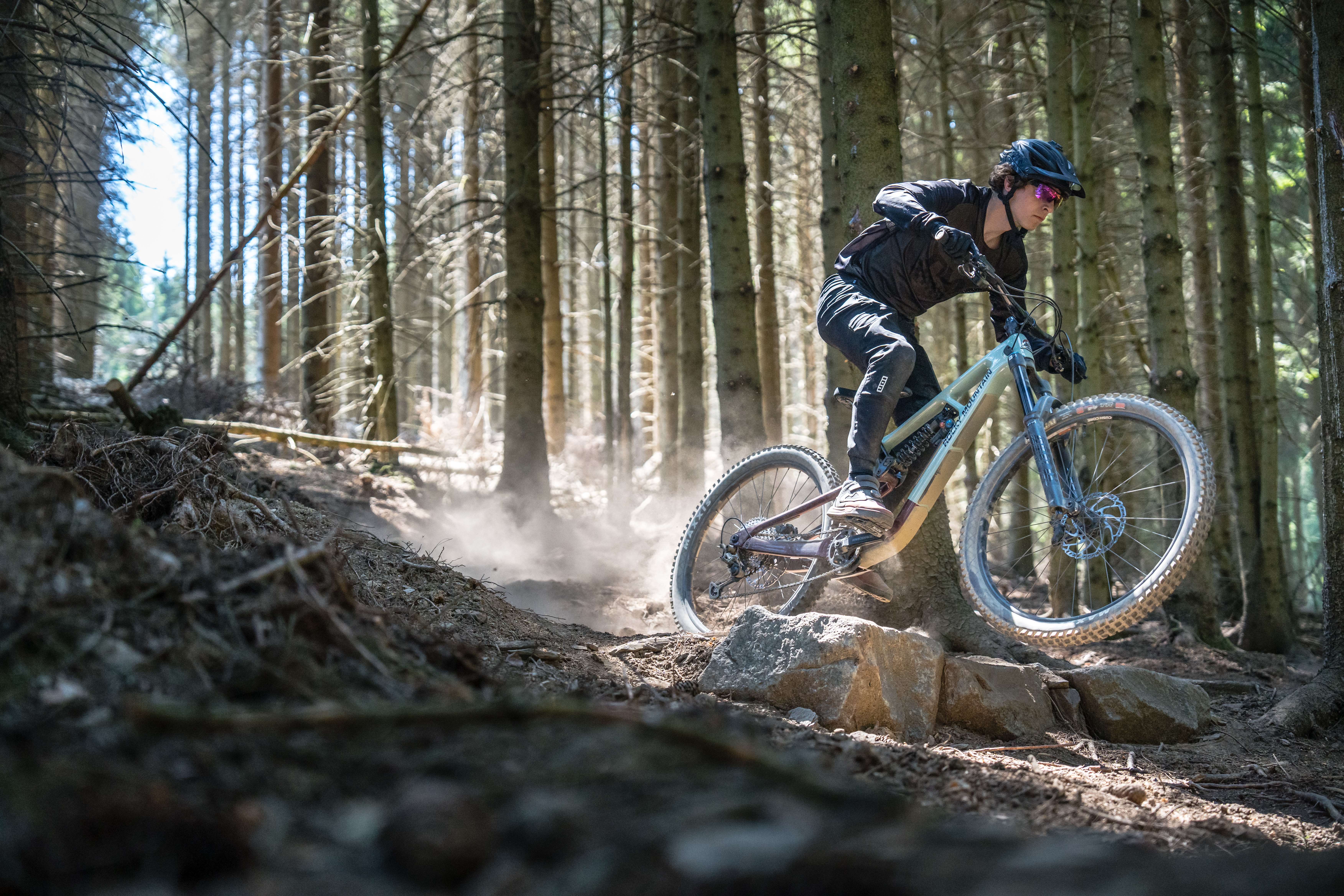 Dès qu’on met du rythme par contre, le Rocky Mountain Slayer est à la maison. Pierriers, racines, dévers… il avale tout sans broncher. Avec cette vitesse, le dernier venu de la marque canadienne se montre joueur et donne envie de décoller au moindre obstacle. C’est grisant, mais attention à ne pas franchir la limite !