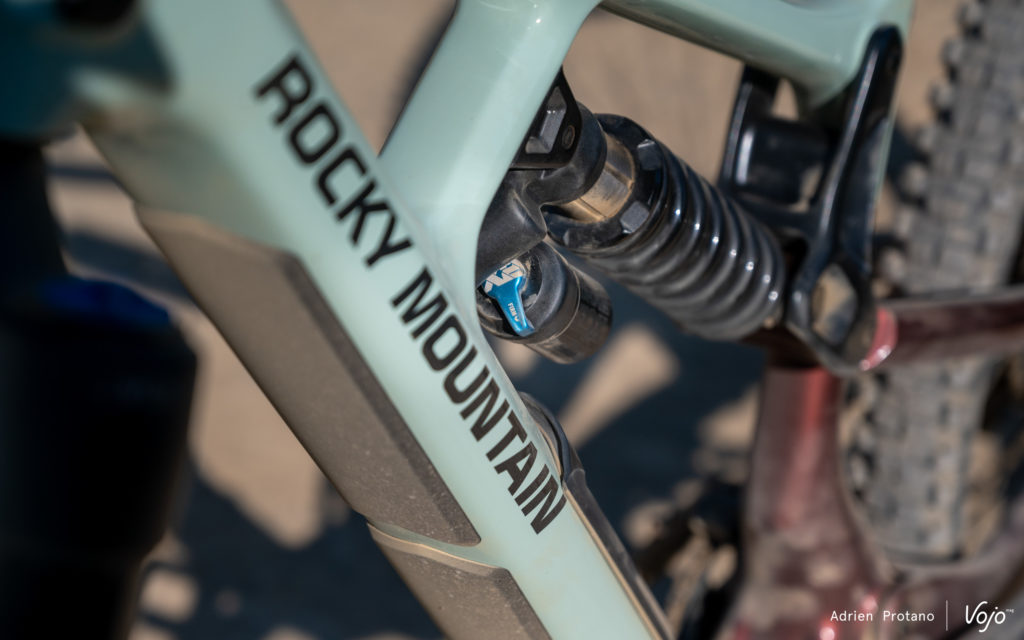 Il est ainsi possible de régler la géométrie au moyen d’une simple clé Allen. Il suffit pour ce faire d’orienter la plaque pivotante sur l’une des quatre positions possibles. « Cela permet des changements subtils sur la géométrie et pratiquement sans effet sur les réglages de l’amortisseur » décrit Rocky Mountain.