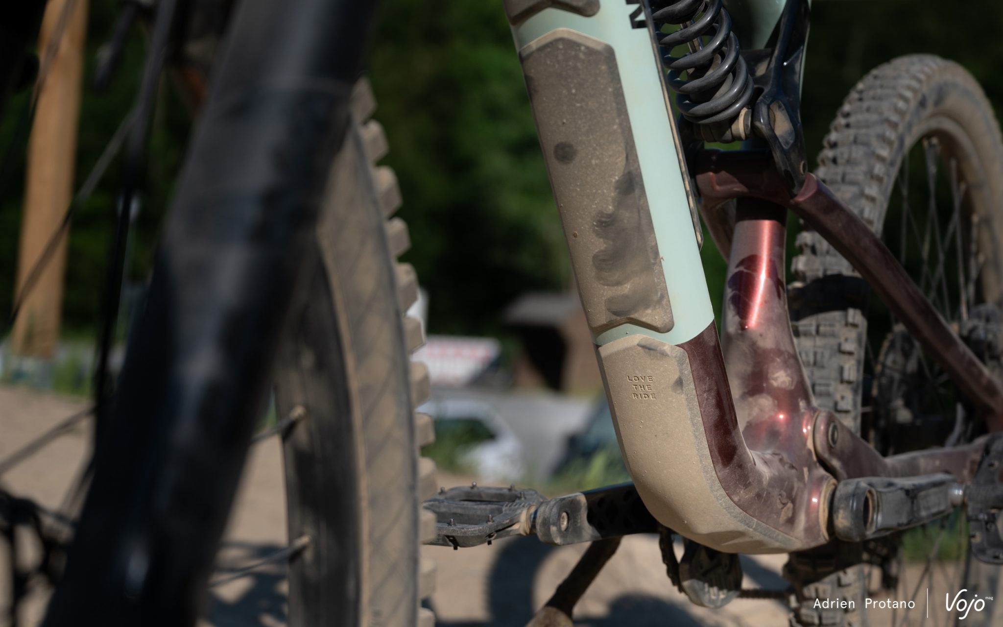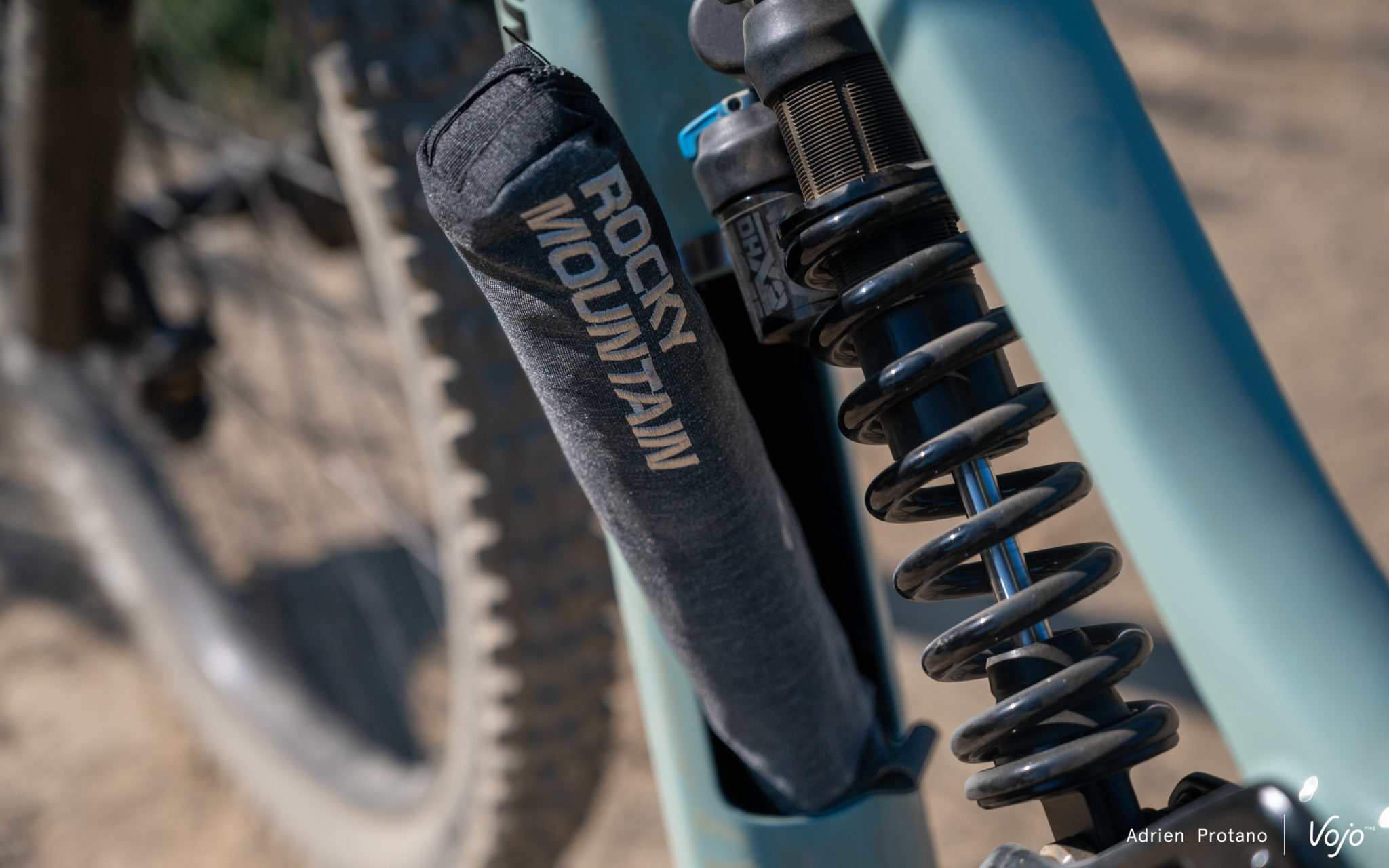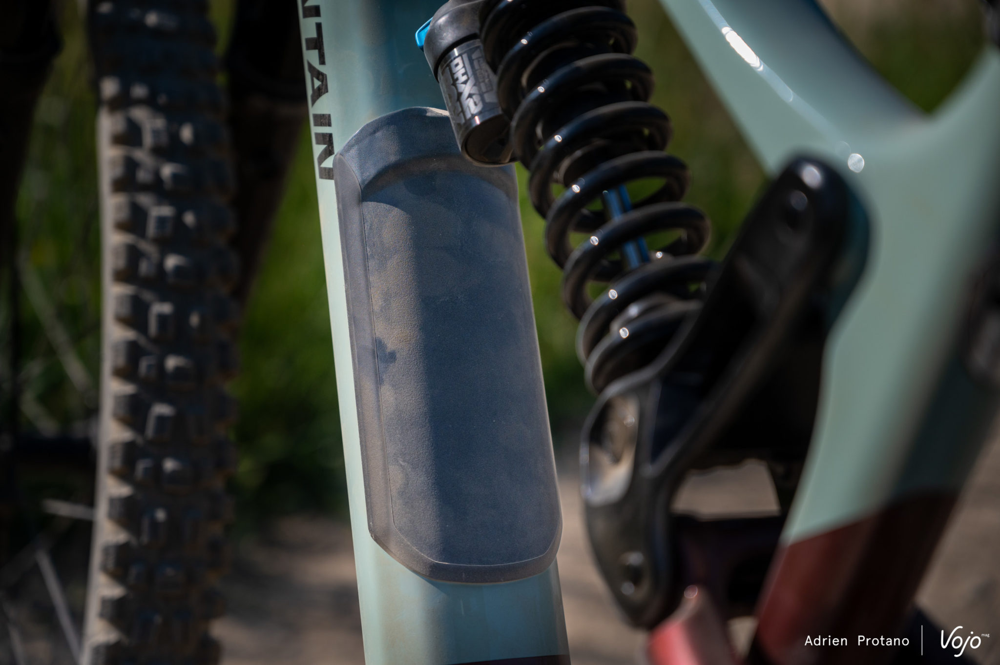 Outre la protection de la base arrière côté transmission, le châssis de ce Slayer est plutôt bien protégé, avec cette protection en caoutchouc tout le long du tube diagonal. En plus de protéger contre les diverses projections sur les sentiers, cela facilite également le transport en pick-up… Ce Slayer a été imaginé et conçu dans le North-shore, cela s’en ressent ! Rocky Mountain explique également avoir utilisé des roulements protégés dans un objectif de durabilité.