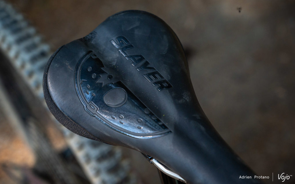 Comme on a pu le voir apparaître chez différents fabricants ces dernières années, le Slayer (uniquement dans sa déclinaison carbone) embarque un rangement au sein du tube diagonal. Cette petite boîte à gants, baptisée « PenaltyBox », est dotée d’un couvercle magnétique et comprend deux sacs de rangement respectivement destinés à accueillir une chambre à air et des outils.