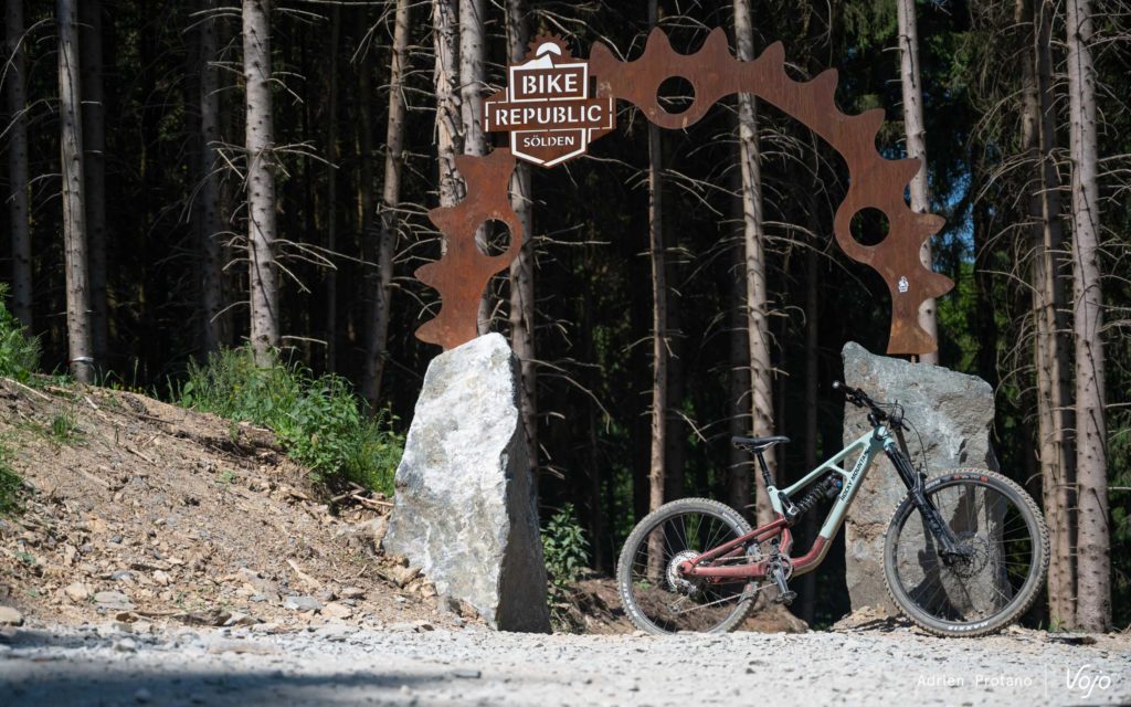 Quand la pente s’accentue encore un peu plus, le comportement sécurisant du Slayer se renforce. Il faut dire qu’avec 63° d’angle de direction, il en faut déjà pas mal pour se faire peur… Nous avons principalement roulé en position « ouverte » et « neutre » durant cette prise en main, et sur les pistes relativement flow et rapides du Green Hill Bikepark, c’est la position neutre que nous avons préférée, couplée au réglage « court » des bases. Cela nous a permis d’obtenir un parfait compromis entre stabilité à haute vitesse et polyvalence de la plateforme. Cela est toutefois personnel et nous ne pouvons que vous conseiller d’essayer les différents réglages pour trouver celui qui correspond le plus à vos préférences ainsi qu’à votre type de pilotage.