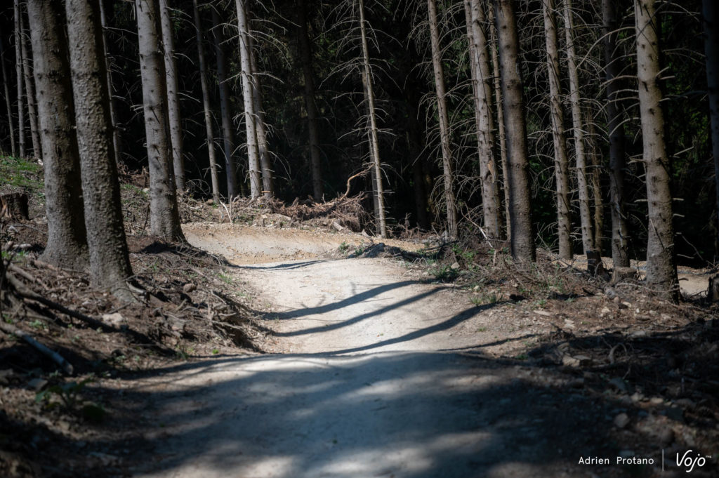 Élancé sur la première piste verte du bikepark, le Slayer est facile à prendre en main. Son comportement est plutôt intuitif et on sent qu’on en a à disposition sous la pédale. Le vélo ne prend pas en traître même lorsqu’on s’écarte de notre trajectoire arrivant un peu trop vite dans un virage.