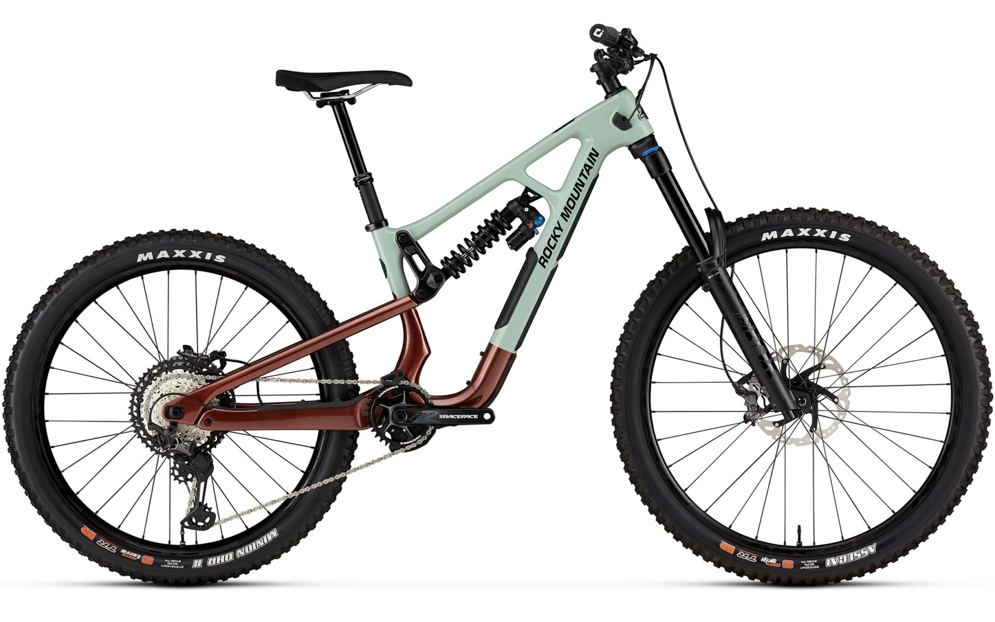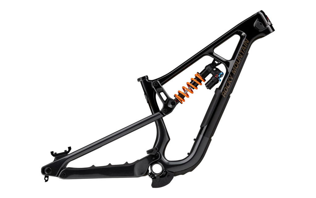Si le Rocky Mountain Slayer n’était disponible qu’en carbone et doté de roues de 27,5″ il y a quelques années encore, la dernière génération en date avait apporté la possibilité d’opter pour un châssis en aluminium et pour de plus grandes roues de 29″. Avec cette nouvelle version, le choix entre cadre en carbone ou en aluminium demeure à l’ordre du jour. Côté train roulant, le châssis est en mesure d’accueillir des roues de 29″ ou un montage dit mulet, à savoir « une roue de 29″ à l’avant pour favoriser le franchissement et une roue de 27,5″ à l’arrière pour une meilleure agilité » selon la marque de Vancouver.