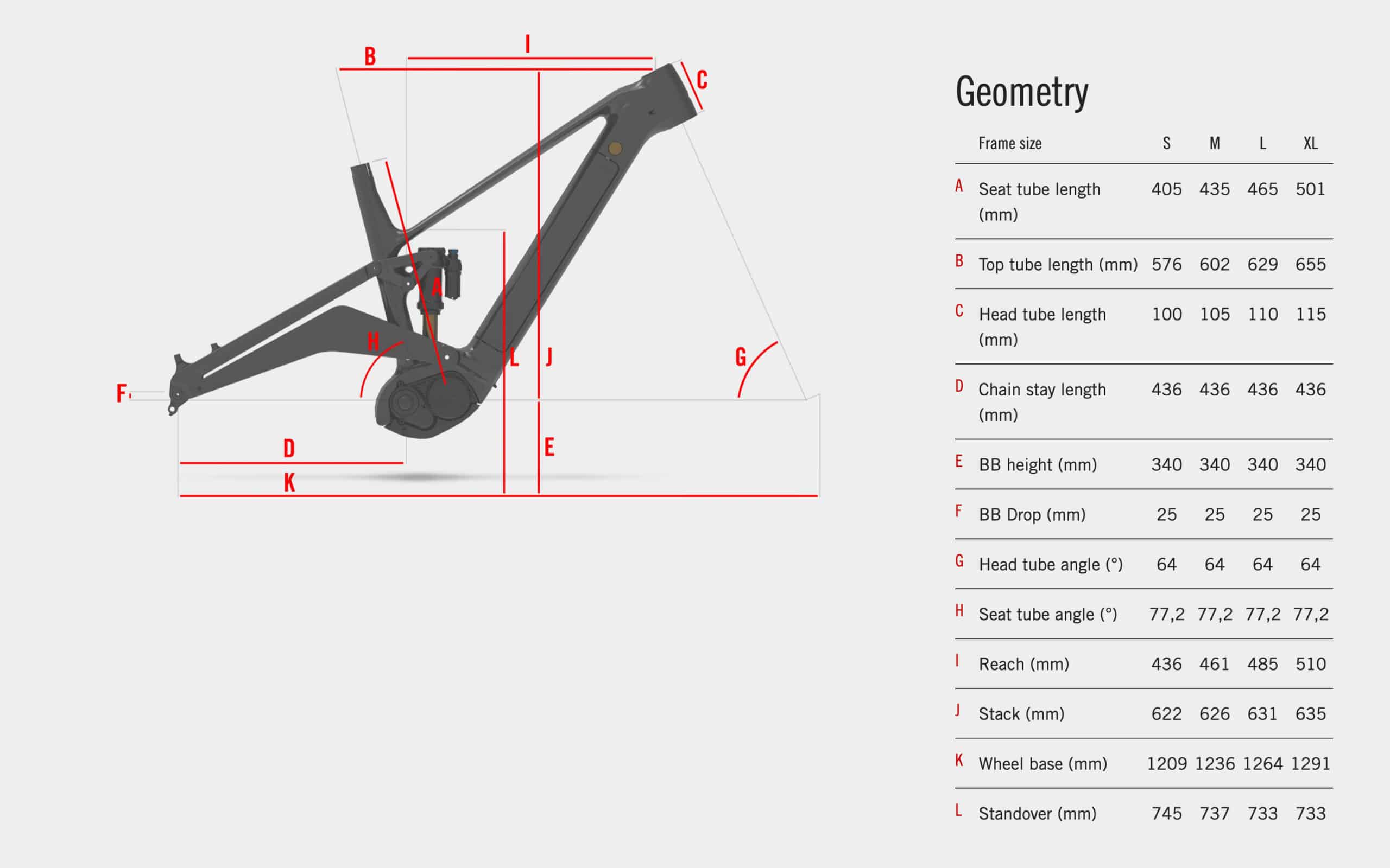 Impossible de nier l’influence de l’équipe d’enduro de la marque sur la géométrie de ce modèle, même si cette déclinaison davantage all-mountain a été tempérée (grâce au débattement réduit) pour coller aux besoins de la pratique : angle de direction de 64°, angle de tube de selle de 77,2°, reach de 461 mm en taille M et bases de 436 mm (pour toutes les tailles).