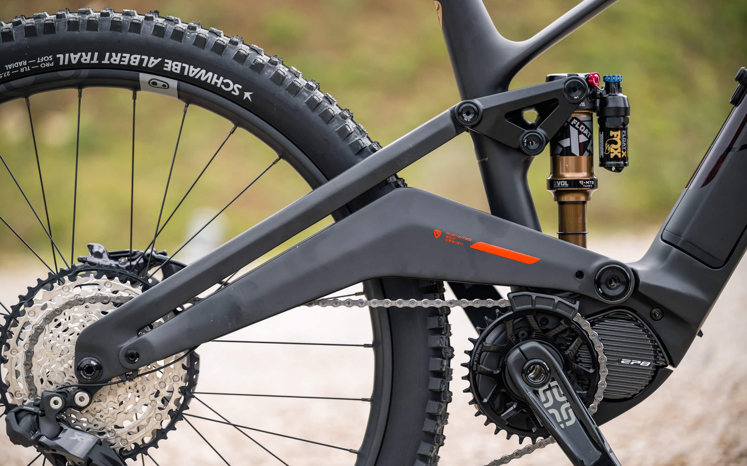 La marque nous explique également que le renfort entre les deux haubans a été déplacé vers le haut, offrant ainsi à la roue arrière le dégagement nécessaire pour les pneus, ce qui est particulièrement bénéfique dans les conditions boueuses.