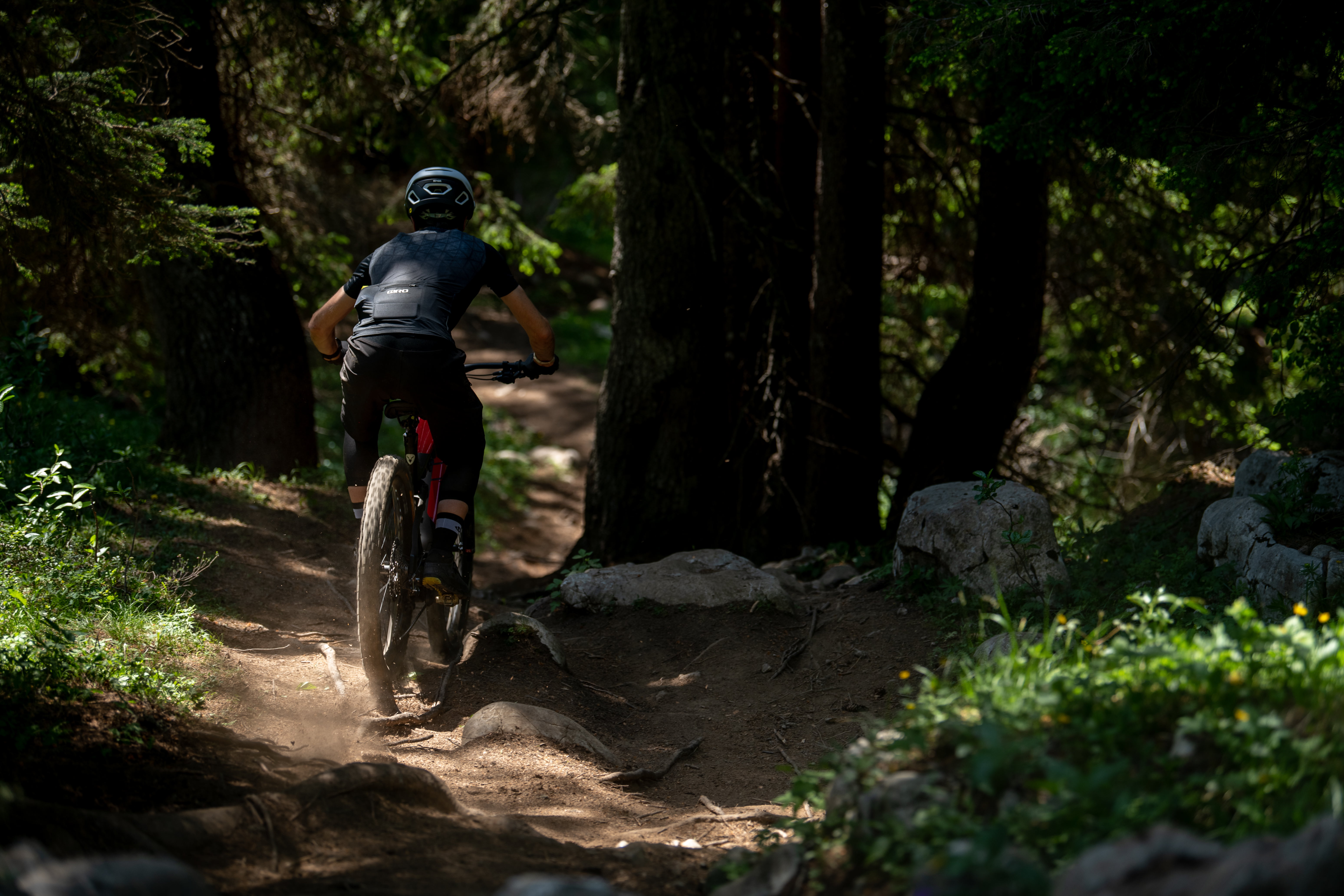 Nous avons pu découvrir ce nouveau Rotwild R.X750 sur les trails d’Andalo, dans le massif de Brenta en Italie. Pour notre 1m79, nous faisons le choix de partir sur une taille L (reach à 468 mm) plutôt que sur une taille M bien trop courte (reach à 437 mm), surtout avec la potence en 50 mm.