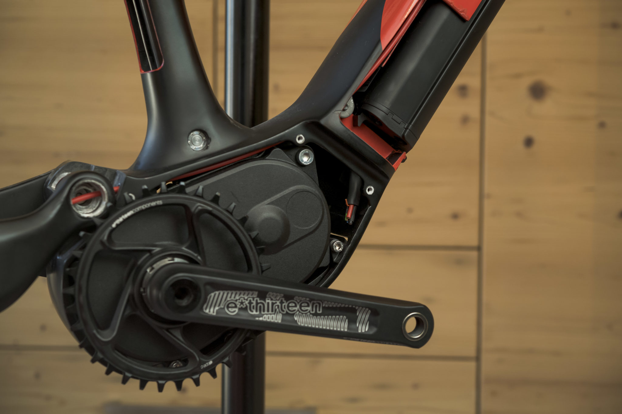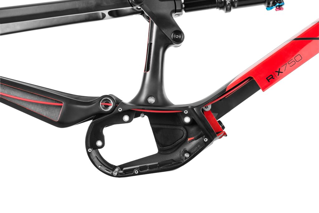 Le moteur Brose S-Mag est complètement intégré au cadre, enveloppé dans une coque de carbone. Pour optimiser la dispersion de la chaleur, Rotwild a intégré des ailettes directement liées au moteur sur les côtés et la face inférieure. L’application Connect C, reliée par Bluetooth au système d’assistance, donne accès à des informations supplémentaires et à un module de réglage des niveaux d’assistance, pour personnaliser et optimiser le vélo selon son utilisation.