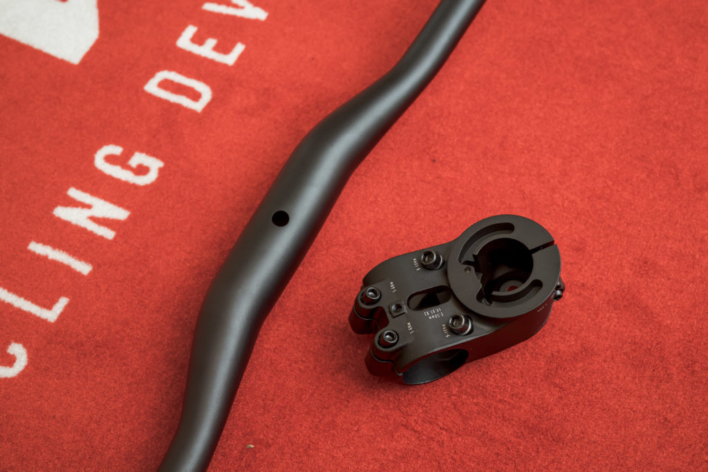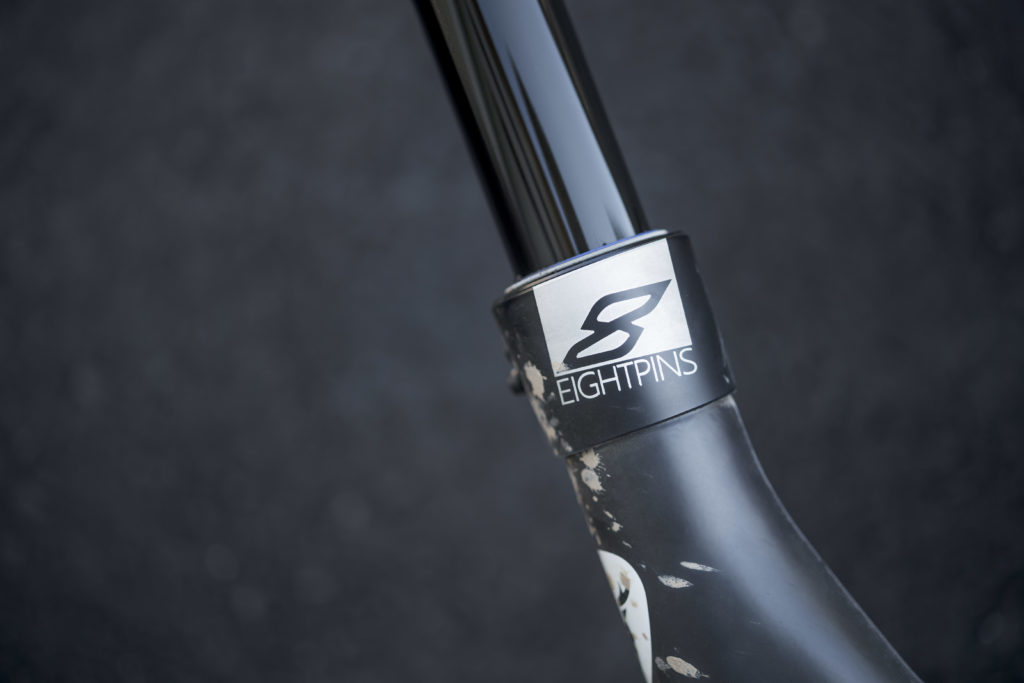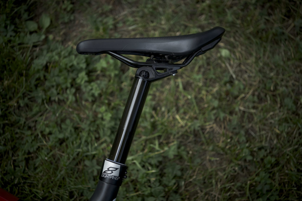 On retrouve également une tige de selle Eightpins entièrement intégrée dans le cadre. Lancée à l’origine par Syntace et Liteville en 2016, cette tige de selle télescopique dispose d’un plus gros plongeur que ses concurrentes pour améliorer la rigidité et la stabilité. Par ailleurs, on peut facilement réduire son débattement pour adapter au mieux la hauteur de selle.