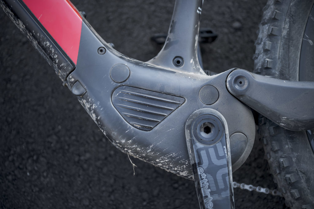 Dès qu’on se met debout sur les pédales, que ce soit en descente ou pour franchir un passage technique, le problème de taille disparaît et on est beaucoup plus à l’aise. Une tige de selle sans déport résoudrait donc très probablement ce problème et nous en avons d’ailleurs fait part à la marque.