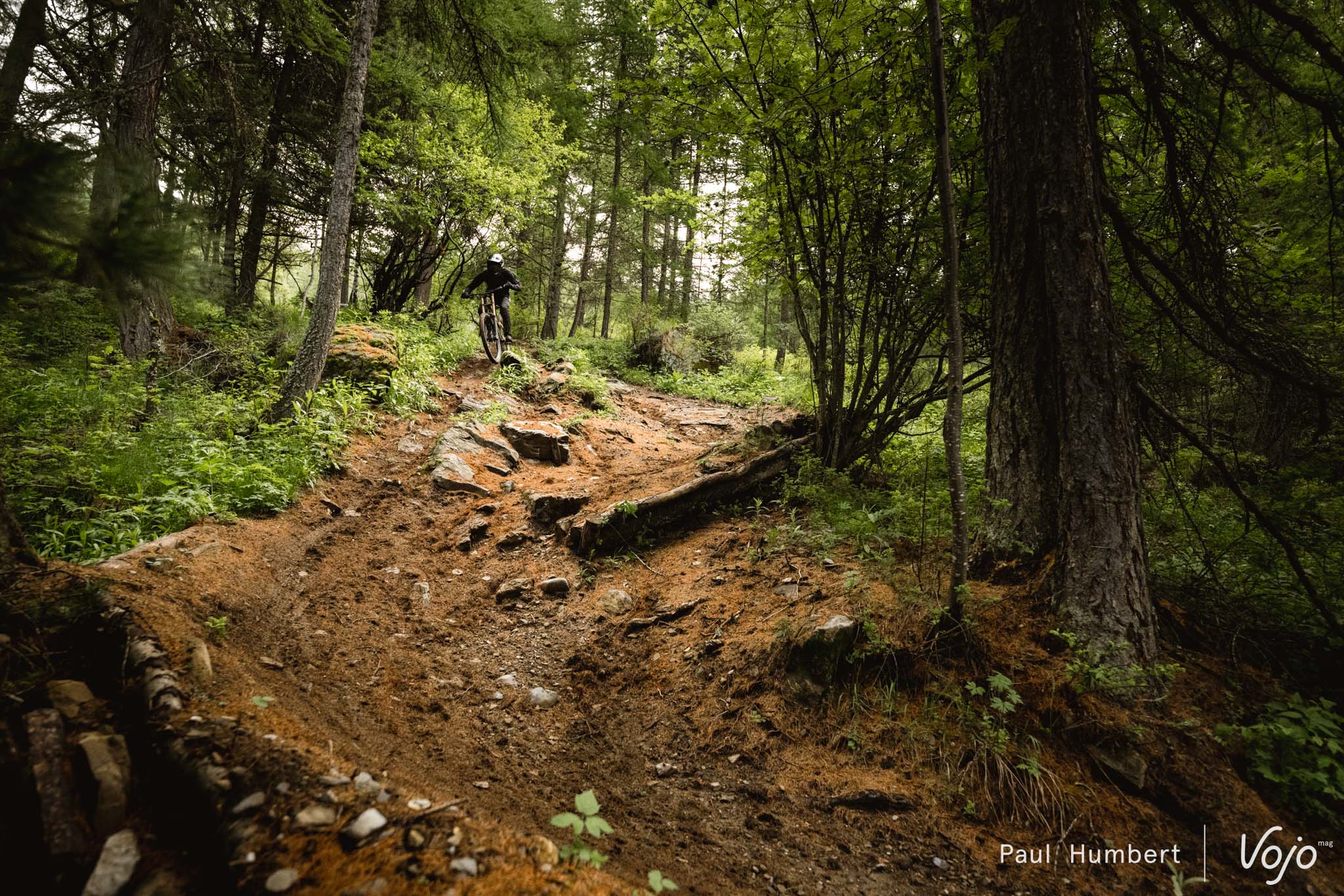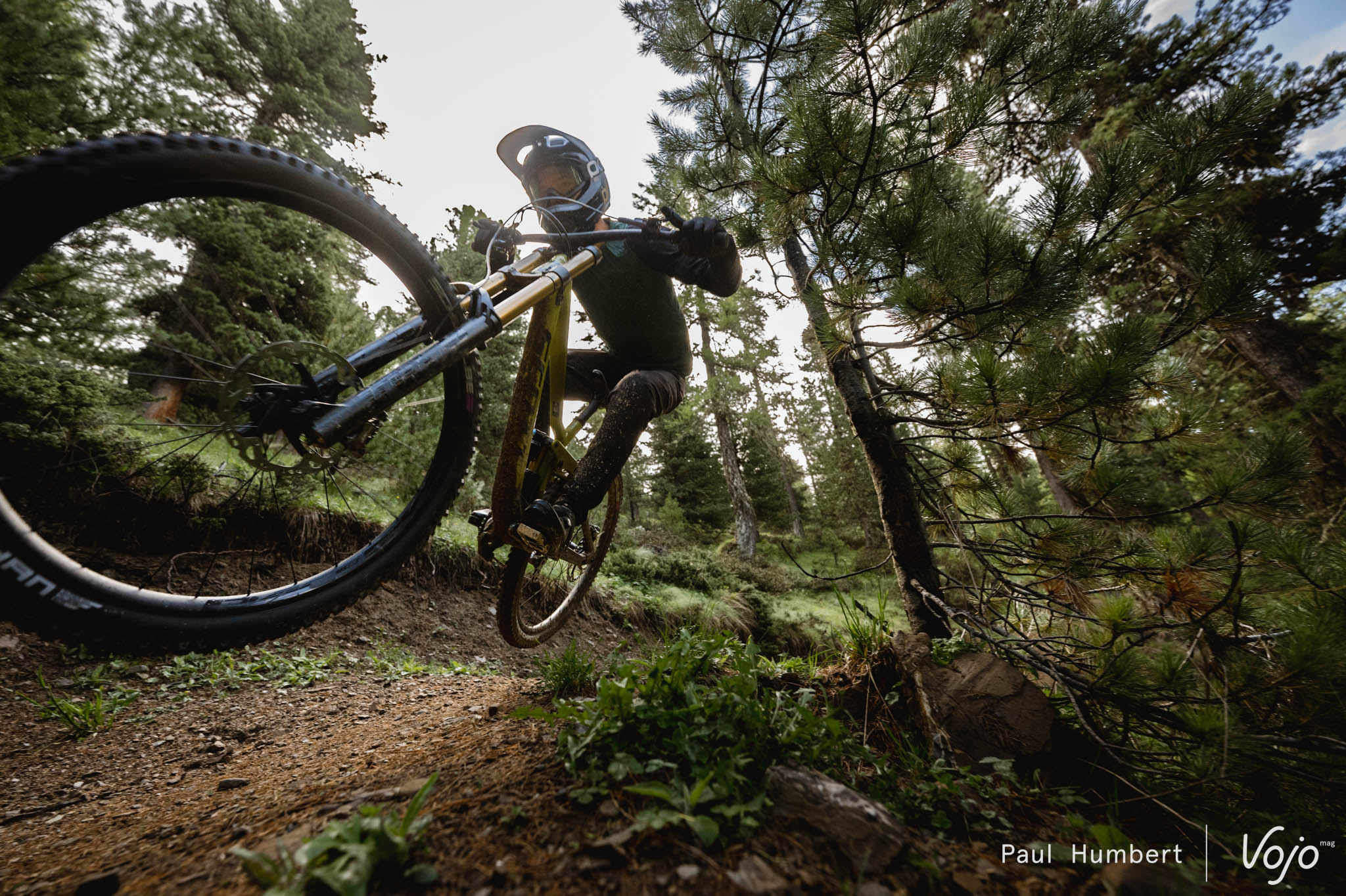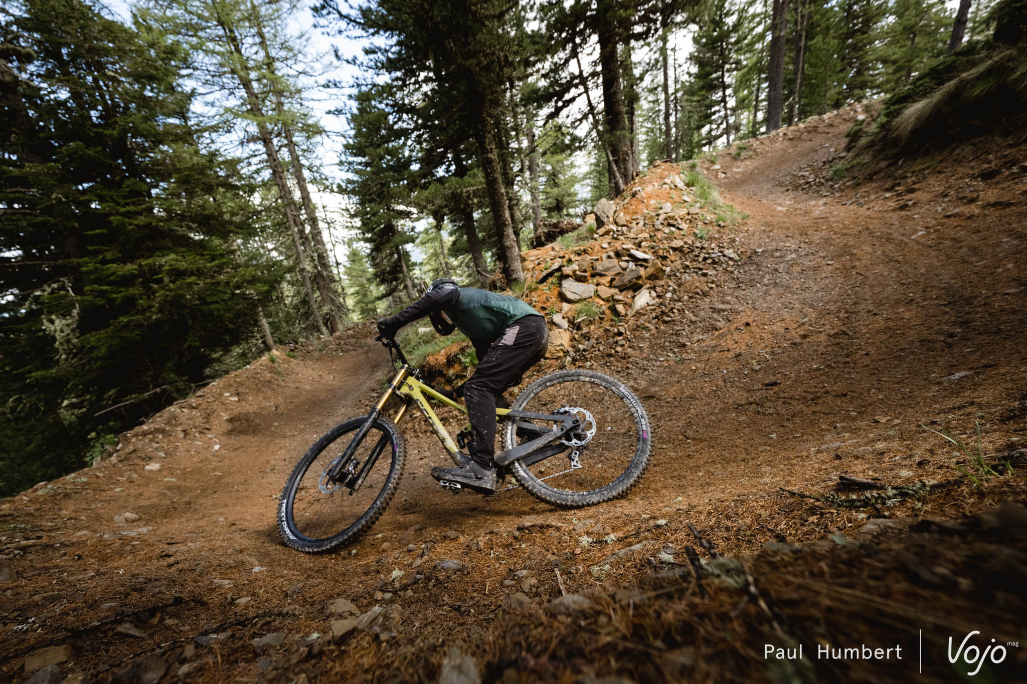 Pour terminer, un petit mot sur le bikepark des Orres qu’on découvrait à cette occasion et qui nous a séduits. Varié, il compte aussi bien des pistes typées enduro que de vraies lignes de DH à l’image de la Black Patrol, qui a accueilli les championnats de France l’année dernière et sur laquelle on aurait bien passé la journée. Pour autant, le site ne verse pas dans l’exclusif et offre aussi de belles traces relativement accessibles pour faire ses premiers pas en bikepark sans craintes comme la piste bleue Follow Me en image ci-dessus.