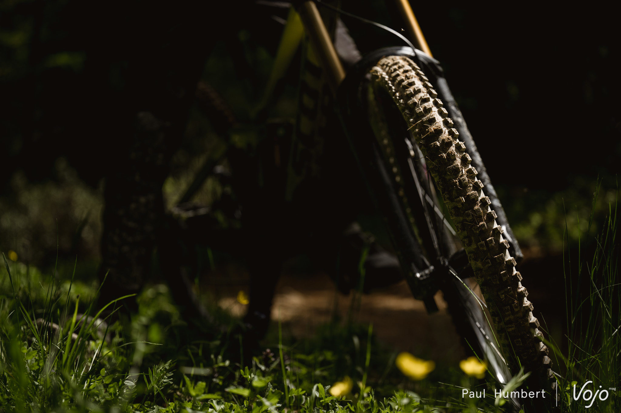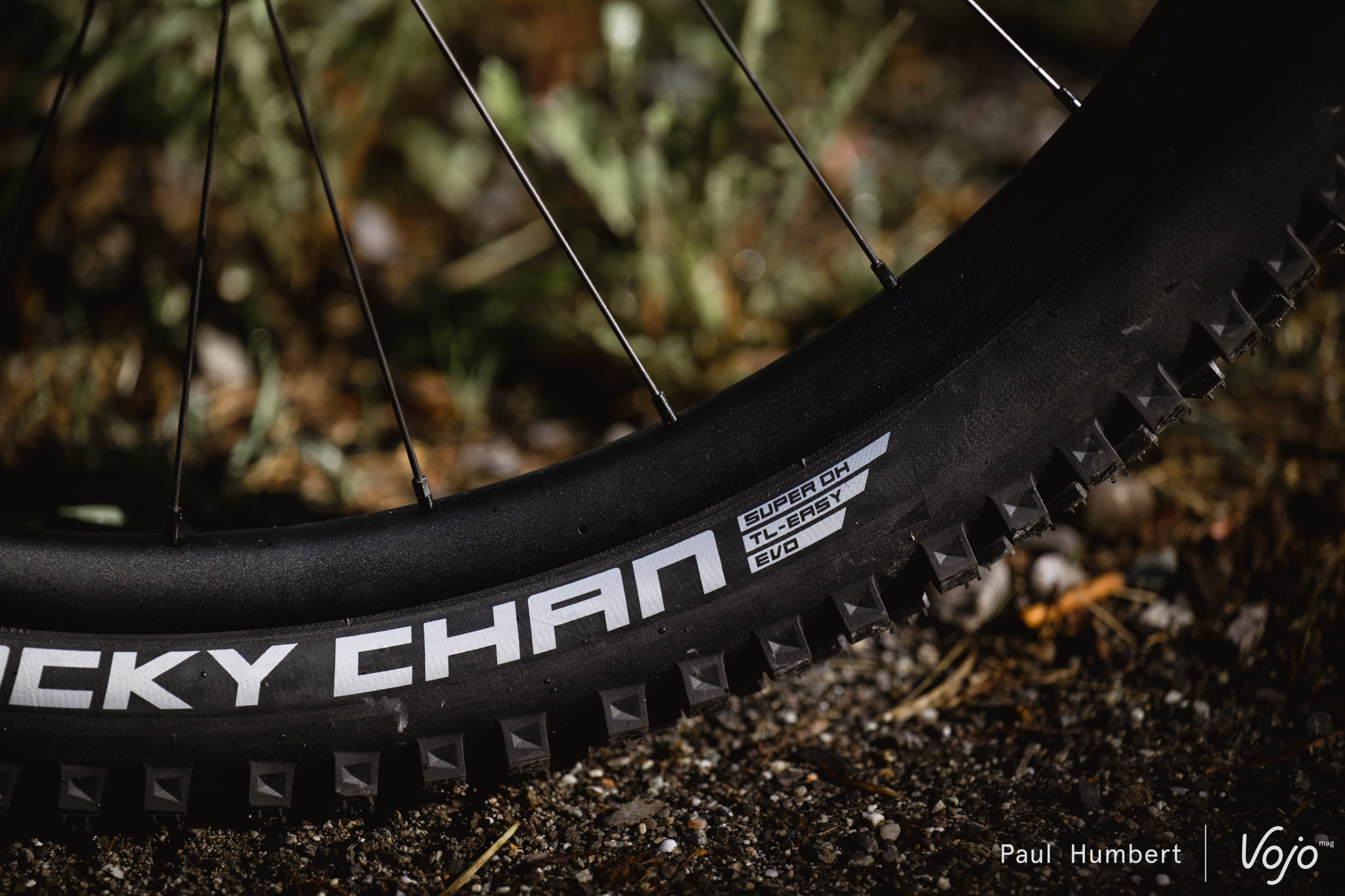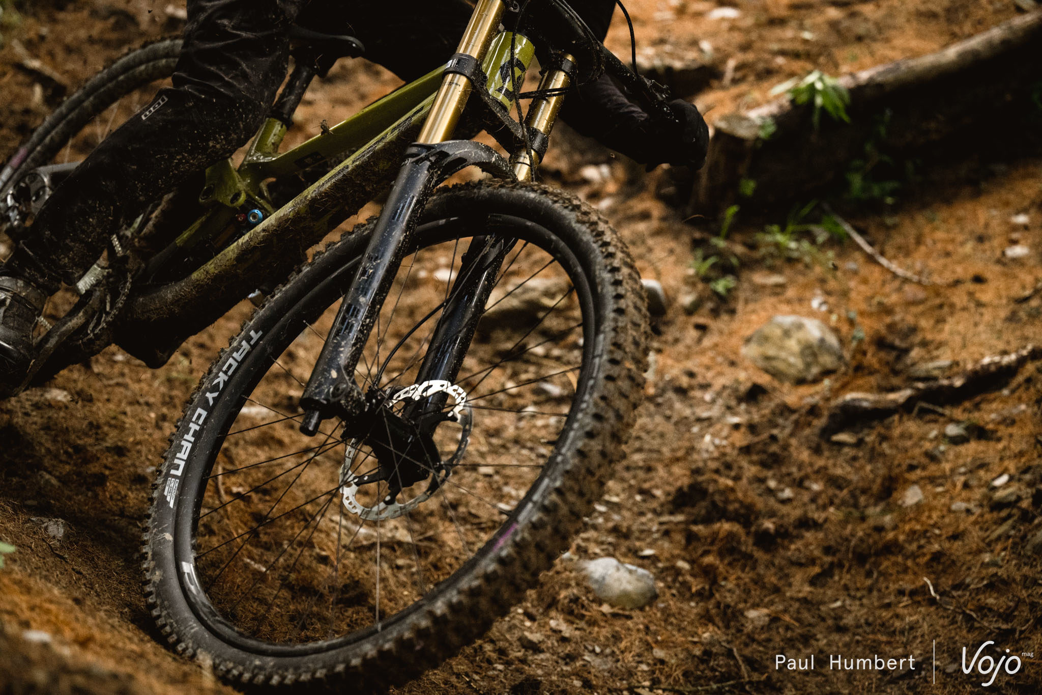 On ne serait pas surpris que cela vienne en partie de la faible largeur de ces Tacky Chan, ou de nos modèles d’essai au moins. Une carcasse DH c’est déjà exigeant et celle de Schwalbe plus que d’autres, alors combinée à une largeur de 2,2″, bon courage pour la faire travailler à basse vitesse.