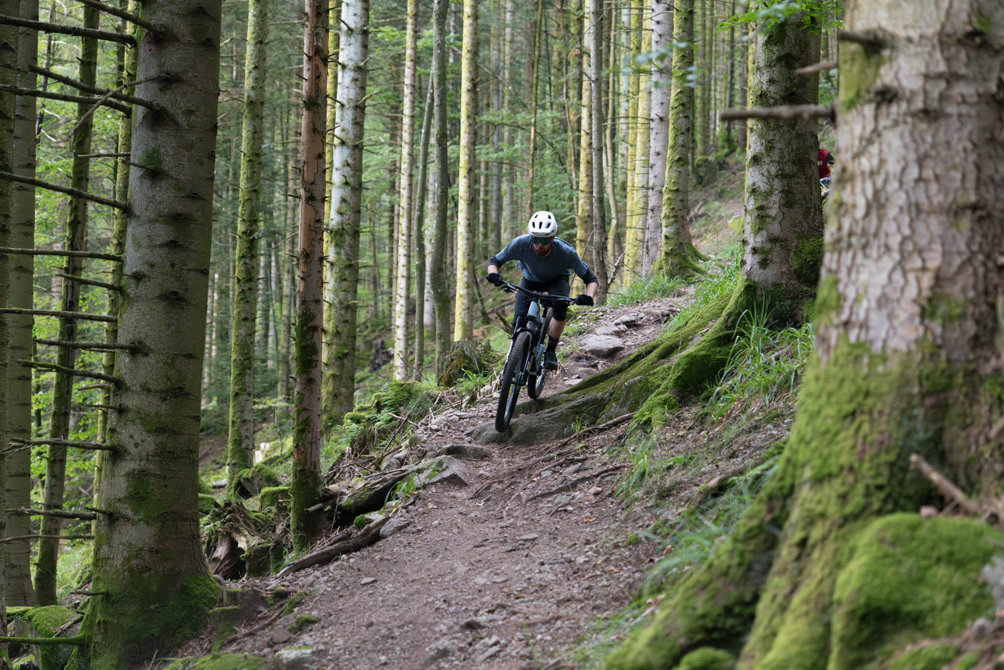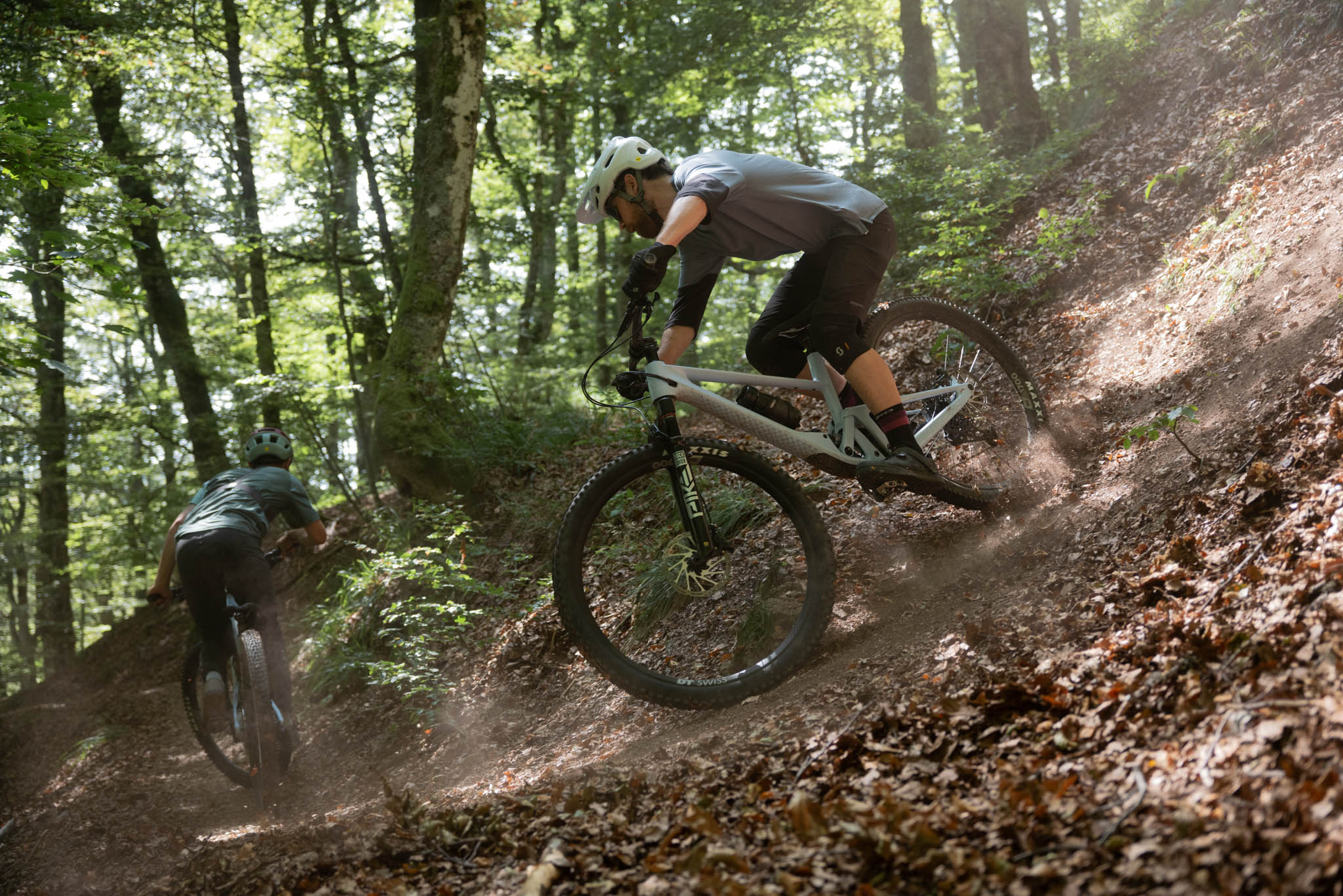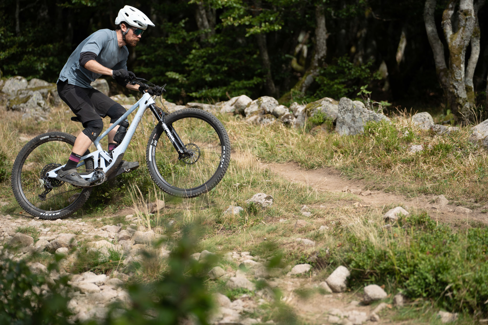 Néanmoins, offrir ce niveau de performance avec un débattement qui reste faible dans l’absolu ne se fait pas sans que quelque chose en pâtisse. En l’occurrence, le confort. Comme en montée, la suspension du 2030 apparaît assez ferme, ce n’est pas la plus « tapis volant » de tous les vélos qu’on a pu essayer dans cette catégorie. Allez, osons-le dire : il faut avoir un petit niveau de pilotage pour réellement l’apprécier, on connaît plus accessible au premier abord. Le Santa Cruz Tallboy et probablement le Scott Spark ST (d’après ce qu’on connaît du Spark 900 et du Genius) sont plus souples et filtrent mieux, avec l’inconvénient d’aller au fond du débattement plus facilement. Ici, on est plutôt dans les sphères du Canyon Spectral 125.