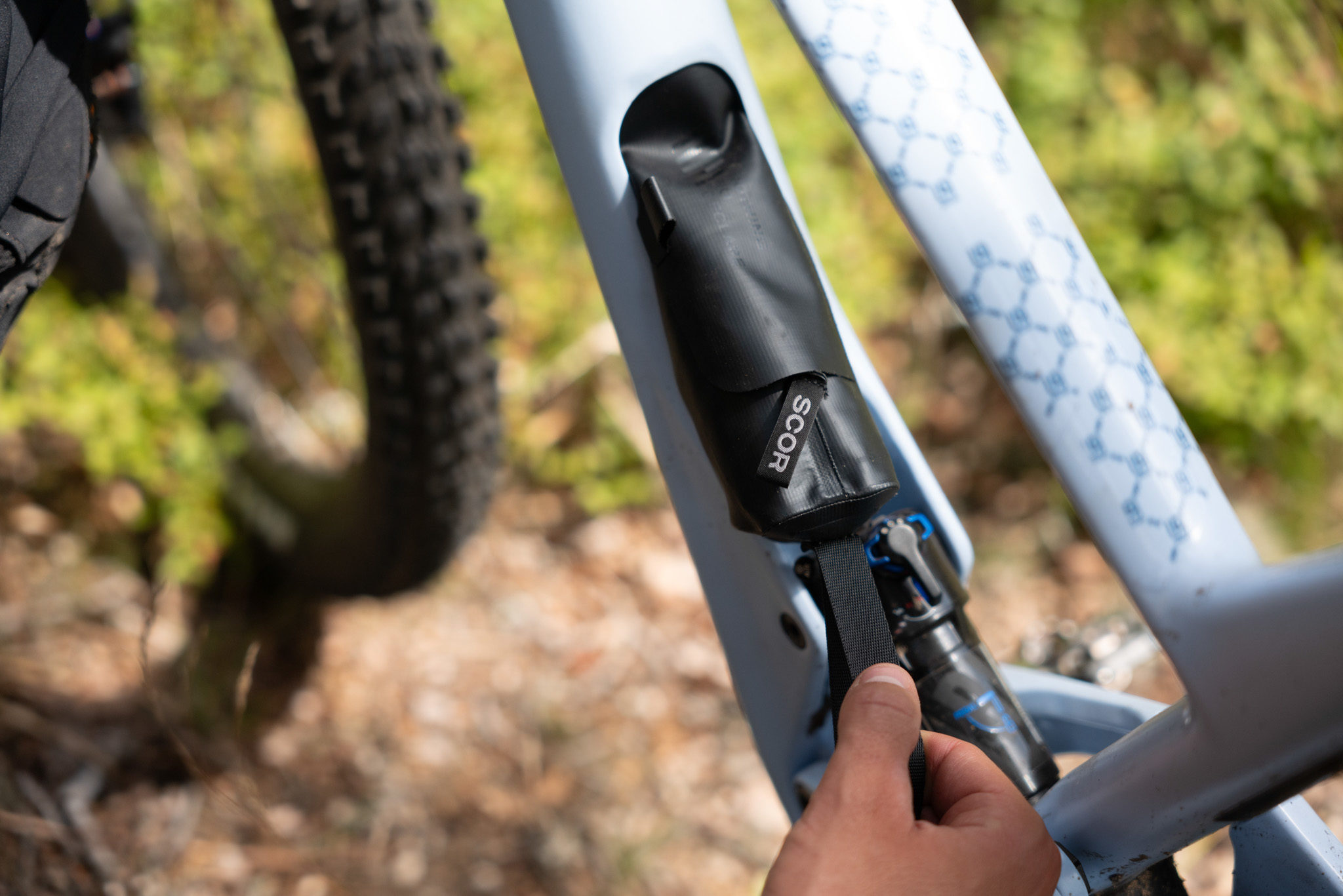 En dehors de ça, de beaux progrès ont été faits sur les aspects pratiques de la machine. On l’a dit, le 2030 est équipé d’une vraie boîte à gants (la Stash Hatch) plutôt que d’un petit rangement sous le tube diagonal. Ce n’est pas la plus large qu’on connaisse mais c’est tout de même bien utile, d’autant qu’elle vient toujours avec une patte de dérailleur de rechange et qu’elle s’intègre parfaitement à la forme du tube. On apprécie aussi l’effort porté sur la pochette, réalisée en matériau étanche et dotée d’un rabat pour protéger la fermeture éclair sous l’ouverture.