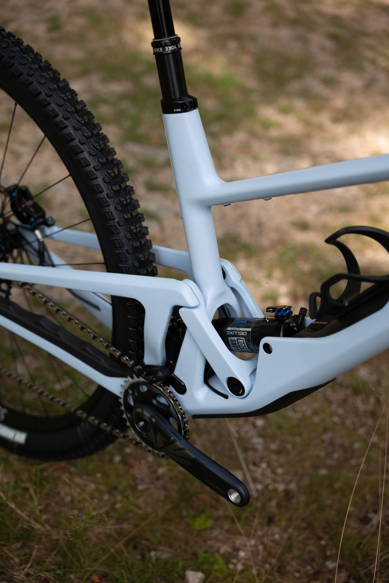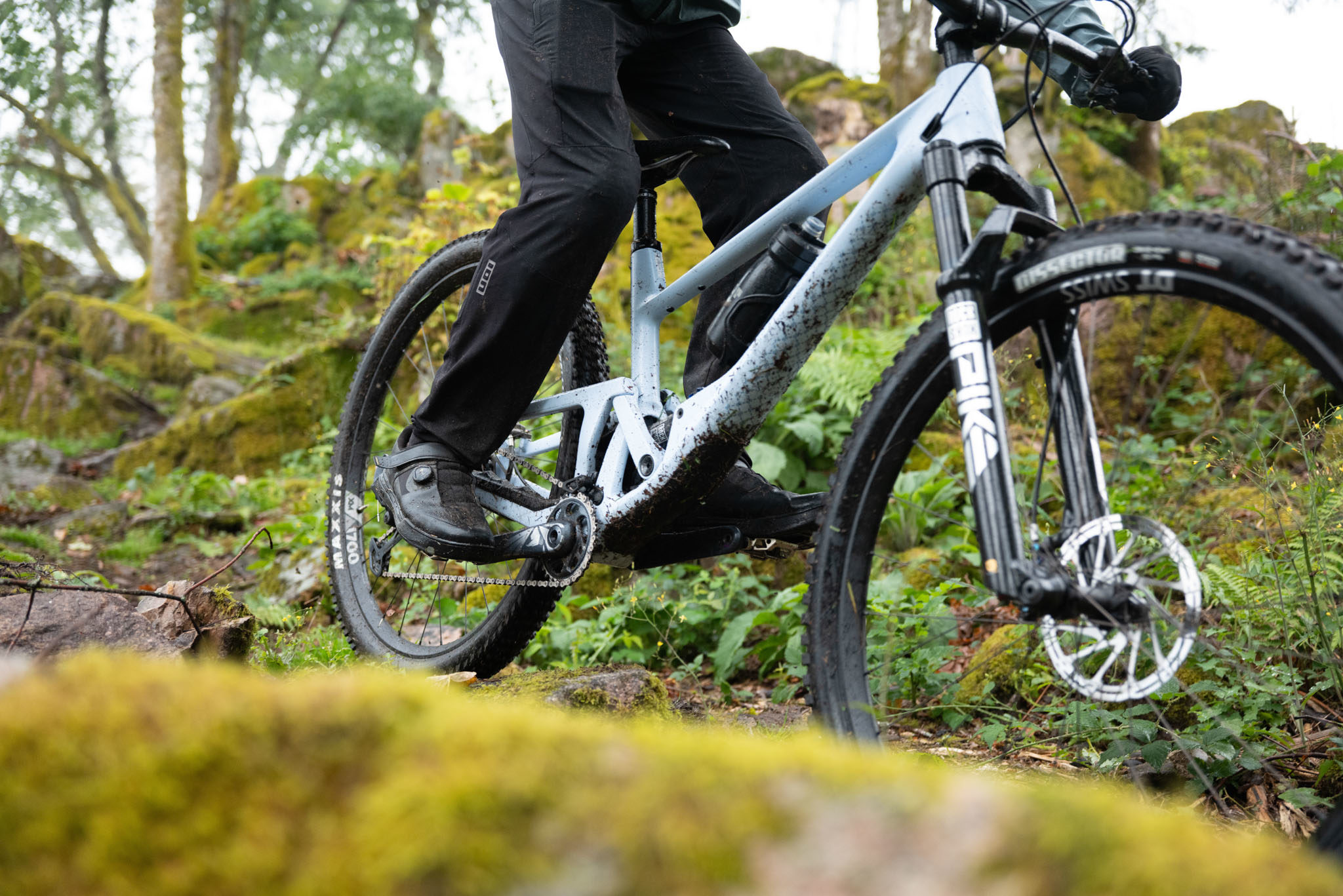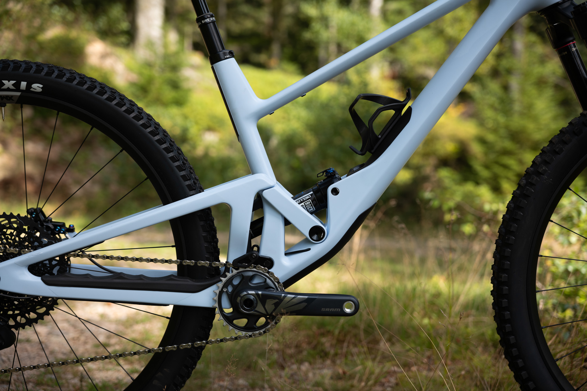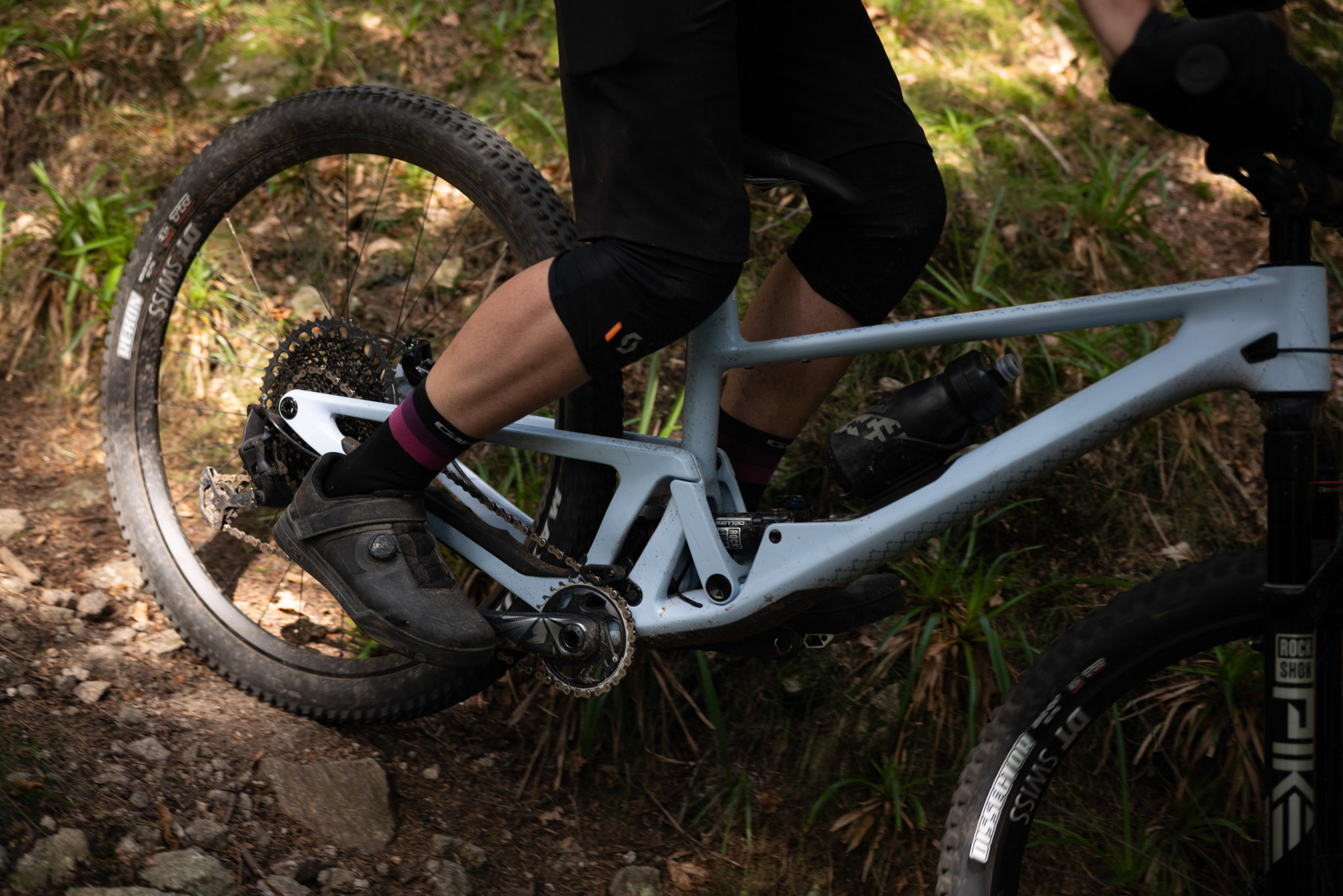 Pour reprendre les mots de Mariano, Scor voulait « créer un vélo qui rende le pédalage et les montées agréables, tout en donnant la confiance nécessaire pour profiter des descentes et en invitant à tirer et à sauter partout ». En somme, un vélo« 50 % montée et 70 % descente » ! Un programme ambitieux et pour y satisfaire, la marque a dû réfléchir soigneusement au triptyque habituel géométrie/suspension/rigidité.