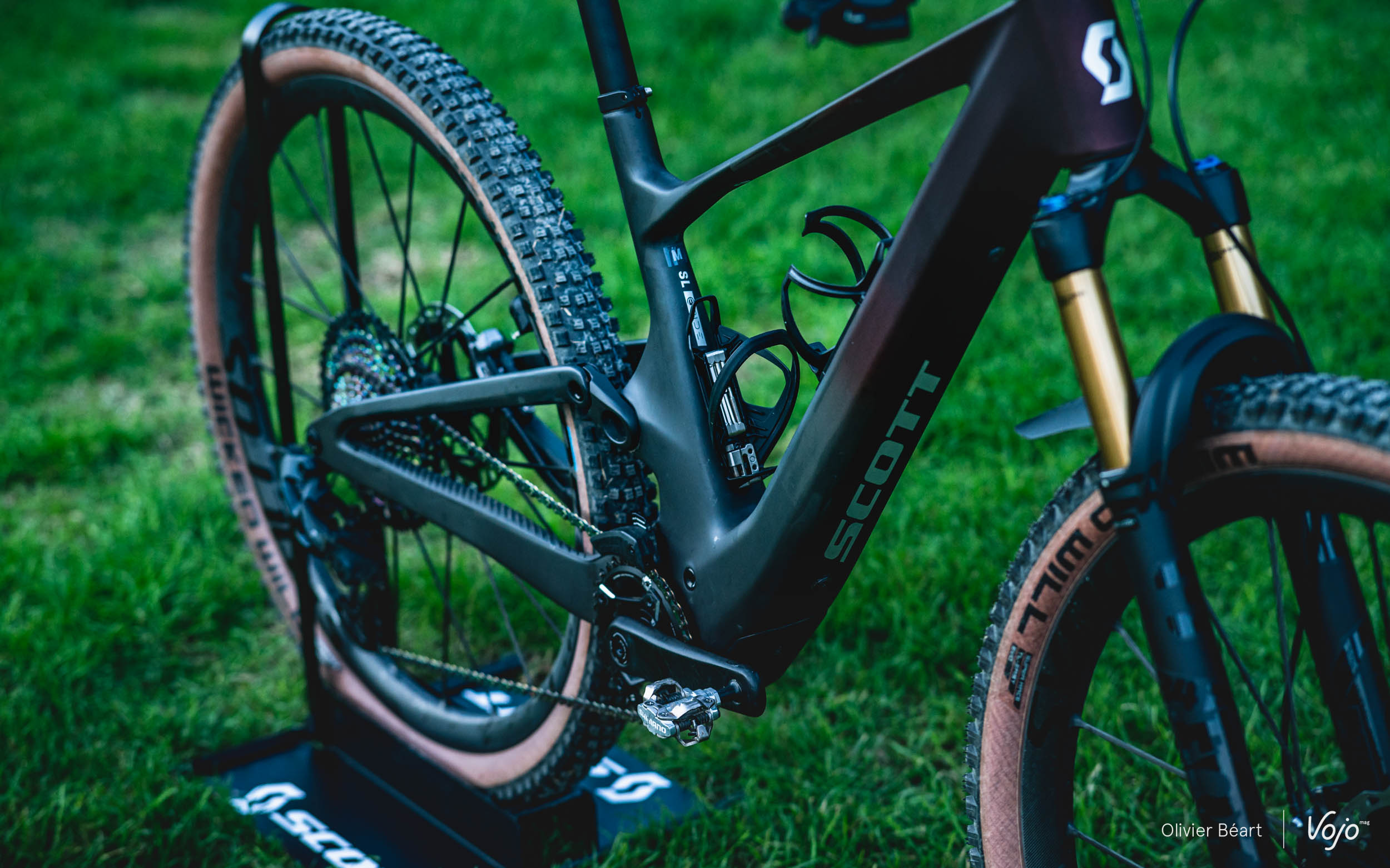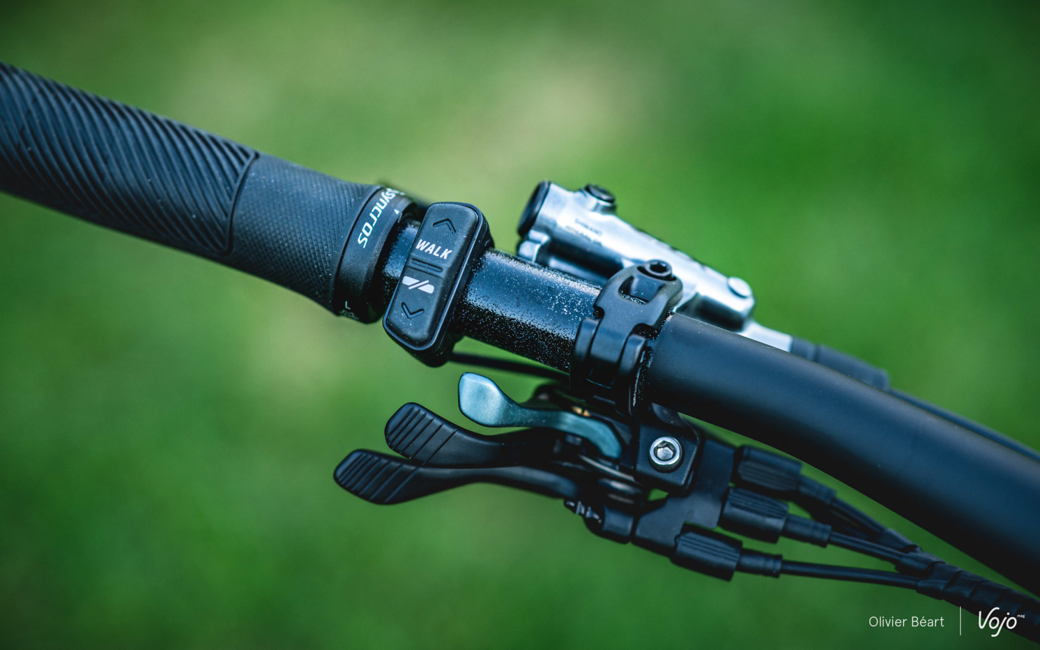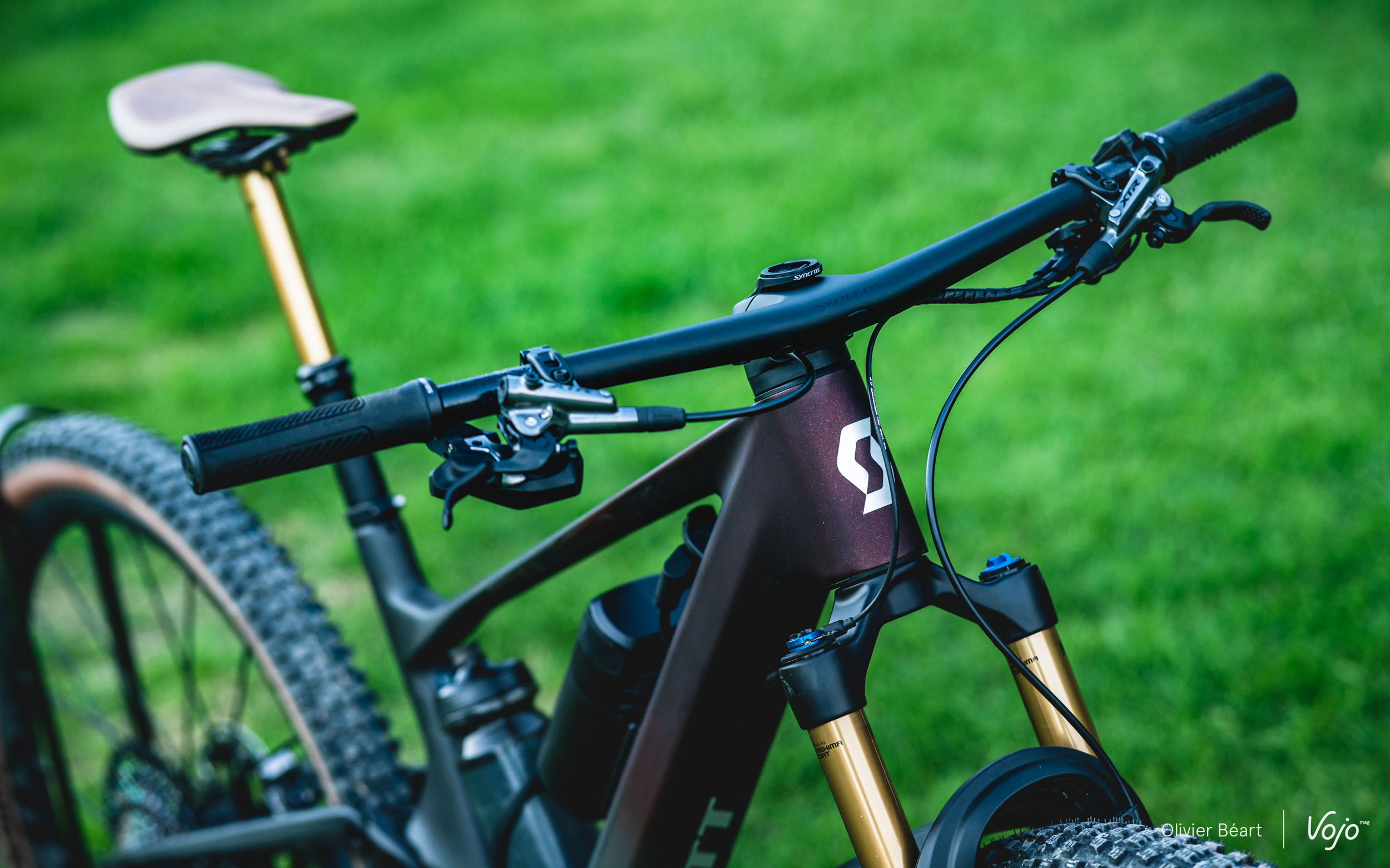 On retrouve toujours le Twinloc qui permet d’ajuster les suspensions sur trois modes depuis une commande au guidon, comme sur le Spark ou le Genius. C’est une marque de fabrique de Scott, très pertinente sur des vélos orientés XC/trail avec un mode de suspension ouvert pour le confort et les descentes, intermédiaire pour les ascensions et les zones qui mélangent technique et pédalage, puis fermé pour les portions les plus roulantes. Seul regret, l’ergonomie de la nouvelle commande (déjà présente sur le Spark), qui intègre aussi la gâchette de tige de selle télescopique, est toujours un peu déroutante au début, même si on finit par s’y faire.